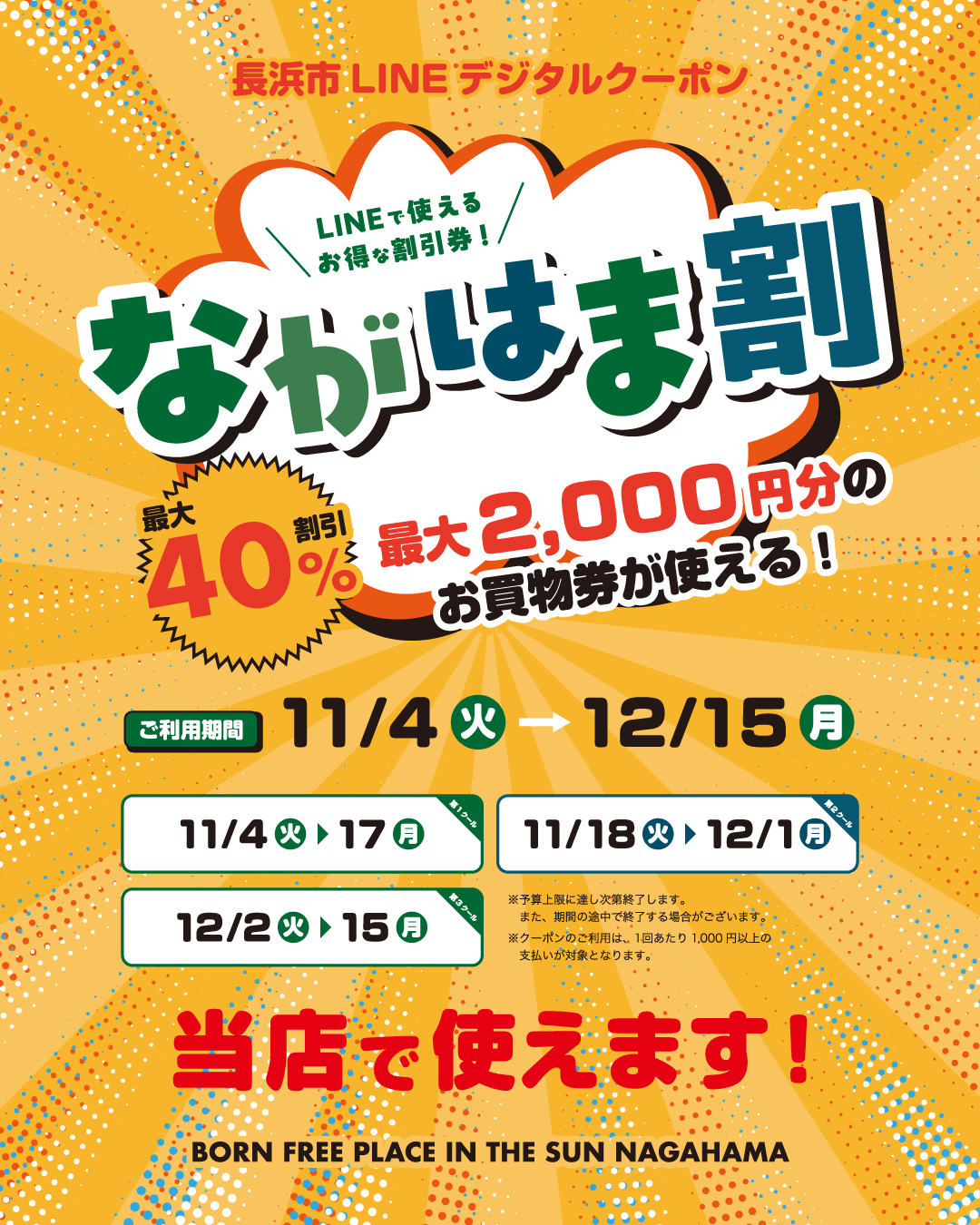 【11/4~12/15まで!】ながはま割使えます!長浜店