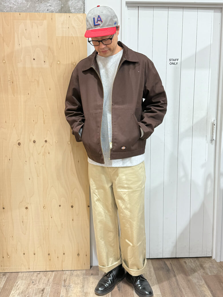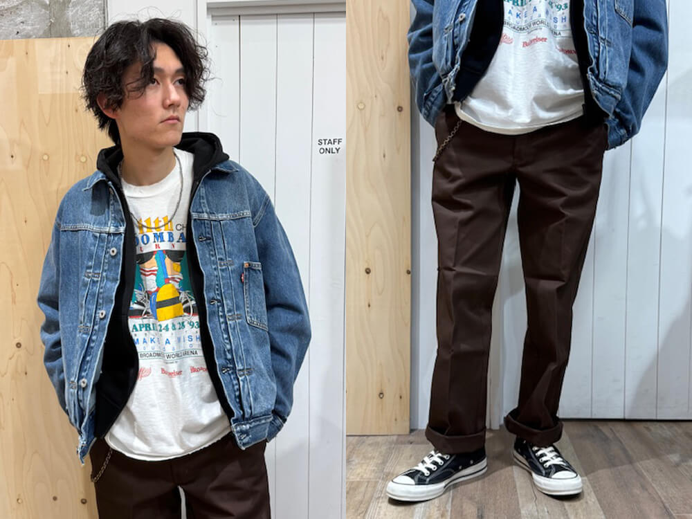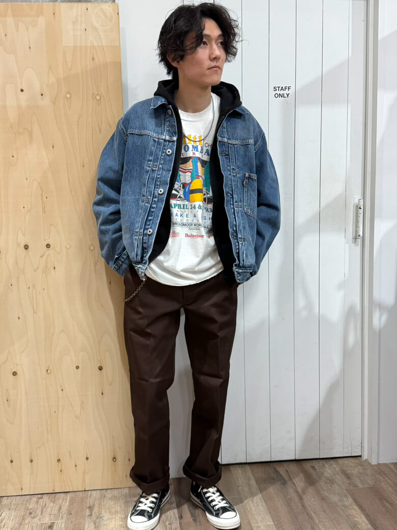 トレンドのブラウンを使った落ち着いたアメカジコーデ。