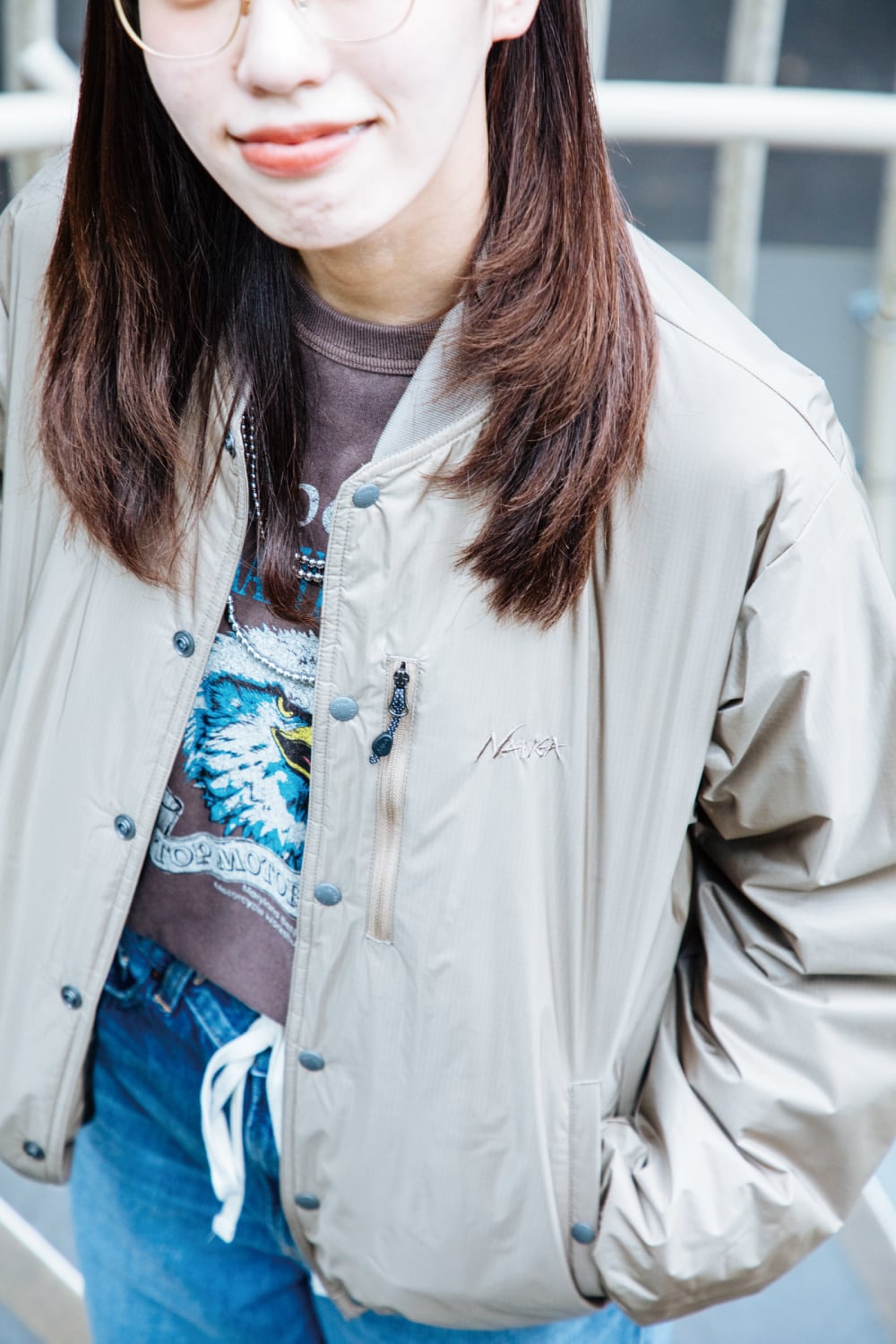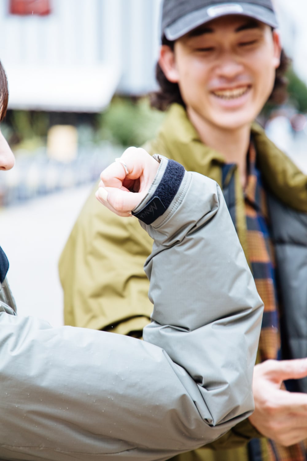 形はコーチジャケット首元はブルゾンといった、それぞれのジャケットのいいとこ取りをしたハイブリッドデザイン。緩めの身幅で裾周りをフラットにしているのがこだわりポイント。ポケット内にはハンドウォーマーを付けているので寒い時も安心。すっきりした首元がパーカーやマフラーとの相性もバッチリ♪
