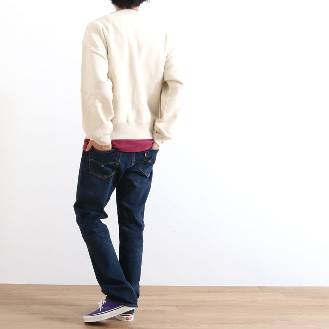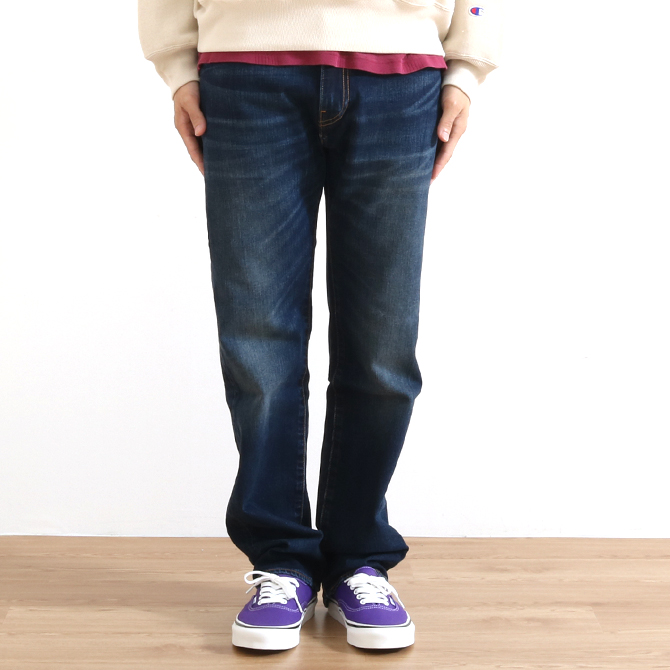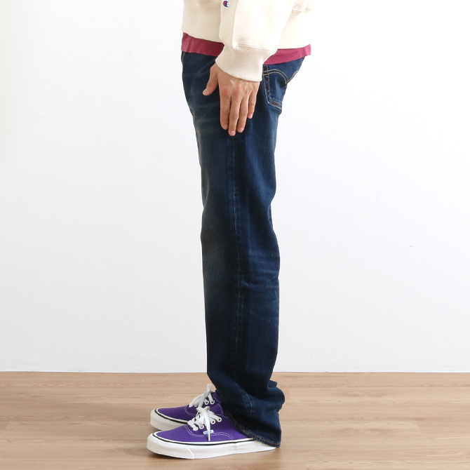 ウエストに窮屈さがなく、ジップフライ、股上は深めと快適な履き心地を演出してくれるディテール。501(R)と同じくスタンダードなシルエットでリーバイスを代表するモデルの一つです。キレイめシャツを合わせてトラッドな気分にも、ルーズな今っぽいストリートコーデにも使える万能デニム。足首までストレートのカットとなっているので、裾をロールアップしてボリュームを付けてもOK。モダンな着こなしも楽しめます。シックで落ち着いた印象のダークヴィンテージカラーのジーンズは定番アイテムはもちろん、カラーアイテムや柄アイテムとの相性も抜群。1着クローゼットにあるだけで何コーデも楽しめる、使いまわしの効くストレートフィットです。