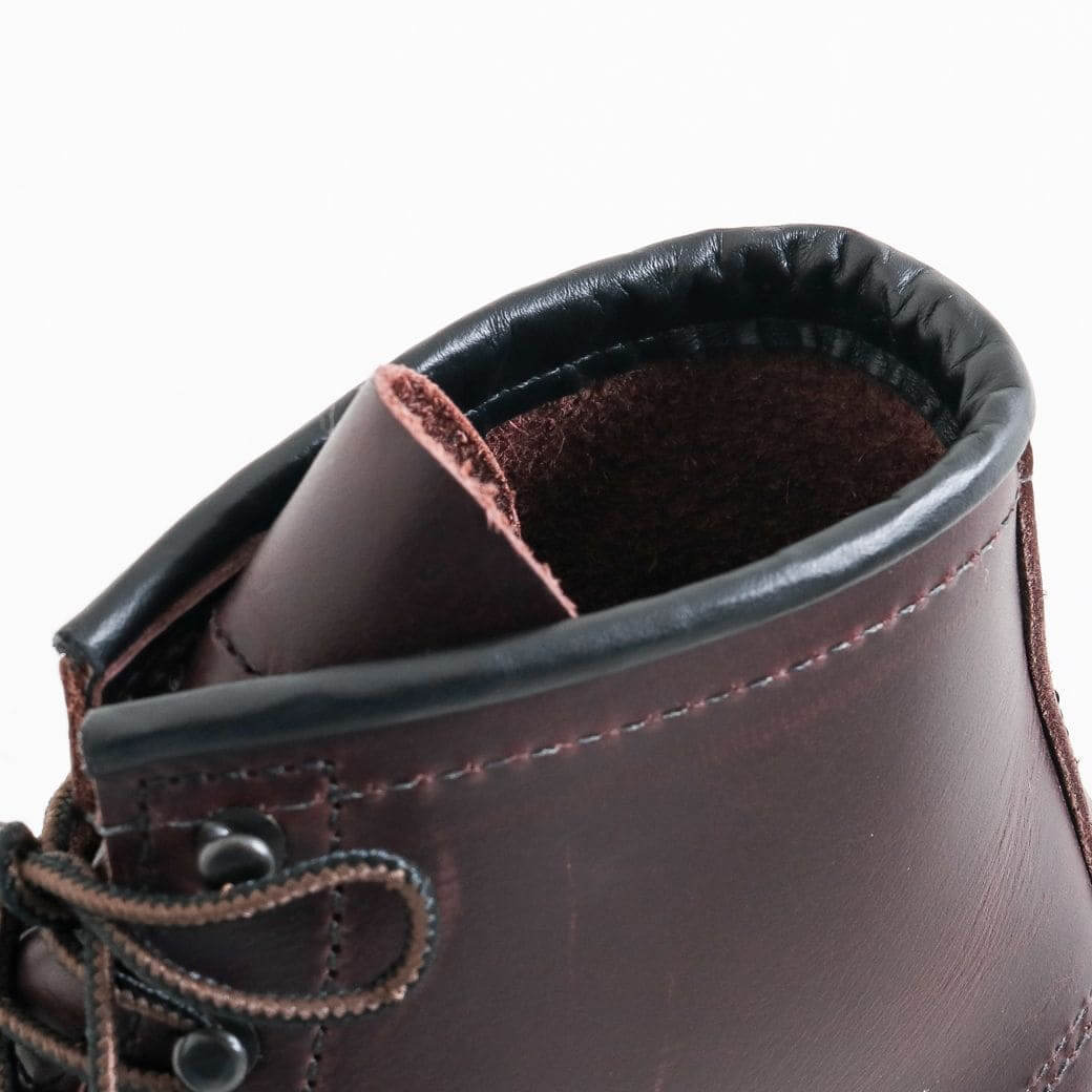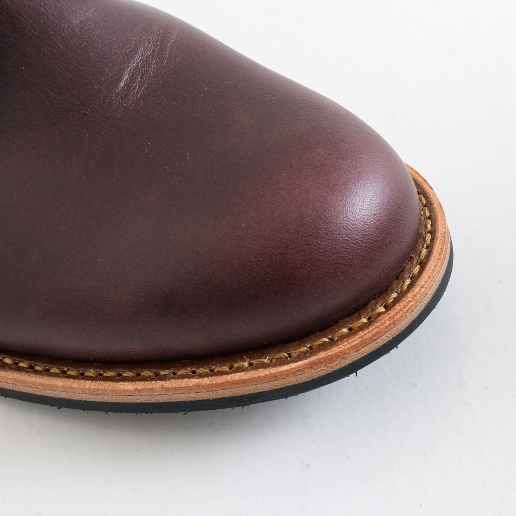 品のある艶を持つレザー。伝統的なレザーソールにグリップの良い樹脂製の半張りを取り付けたソール。こうした要素の組み合わせが、フォーマルなスタイルに実⽤性を加味した伝統的なアメリカのブーツを思わせます。