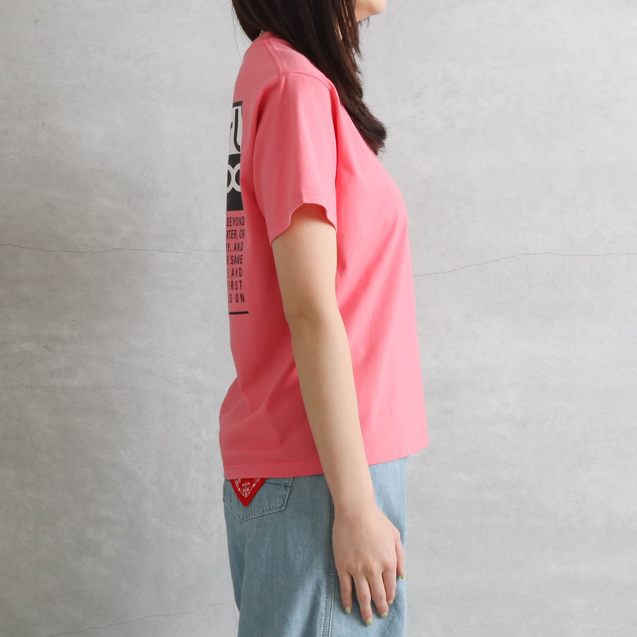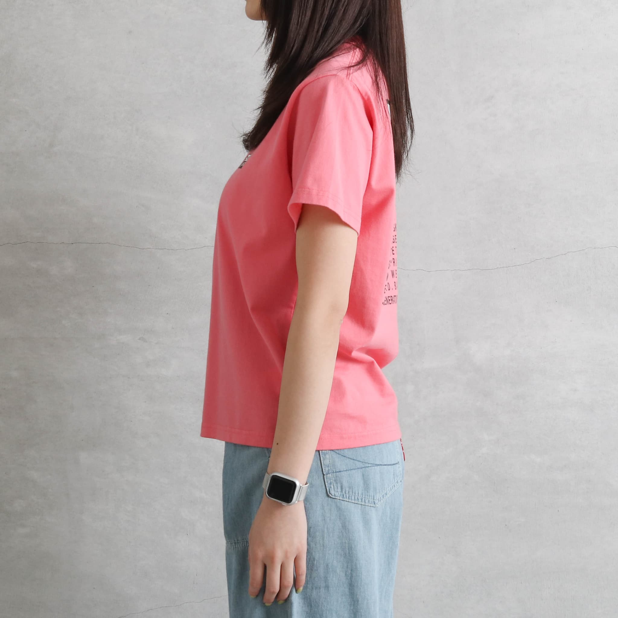 バックプリントがインパクト大なのでシンプルなボトムスでコーデを組むと良さそうです。