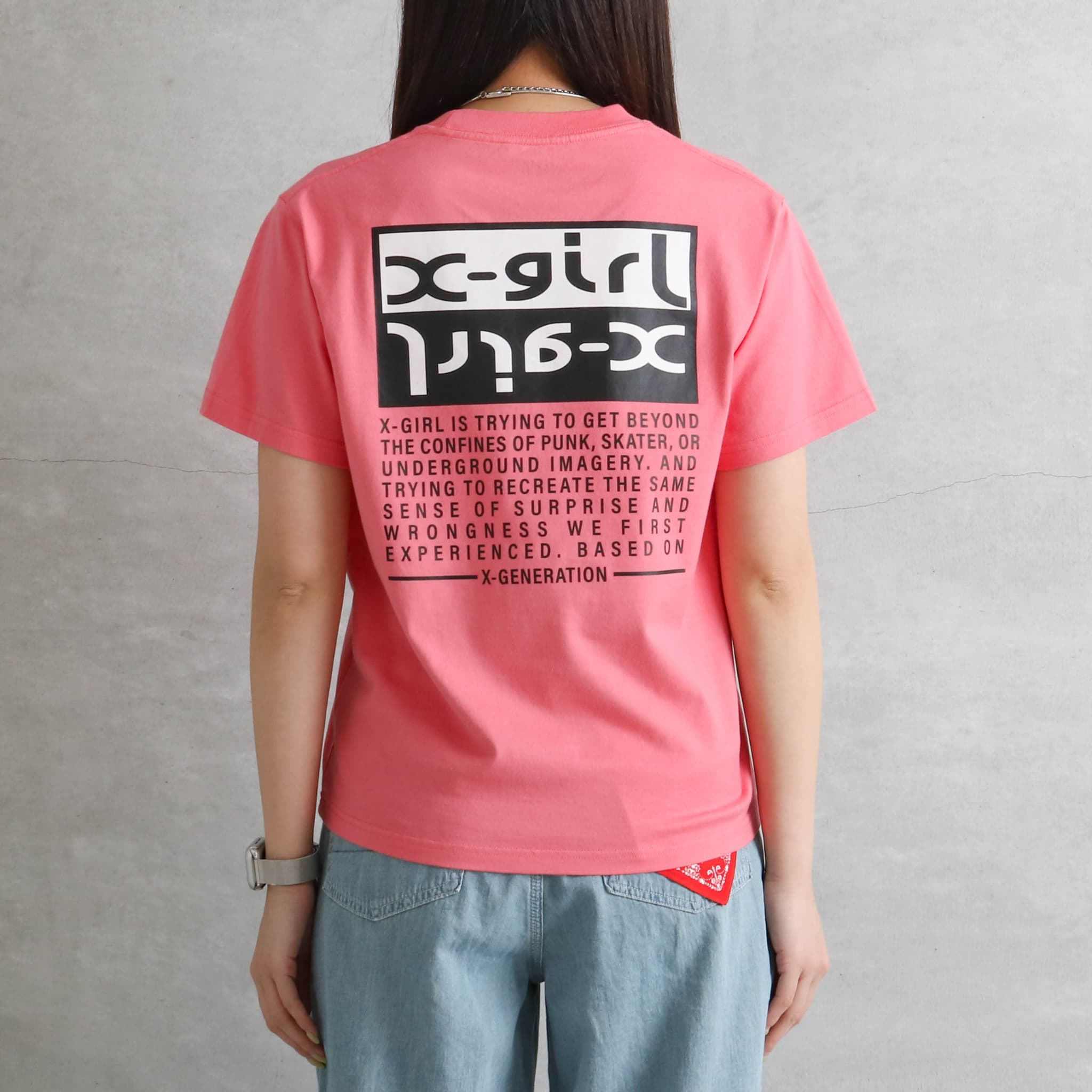 X-girlより、バックプリントが目を引く半袖Tシャツの登場です。