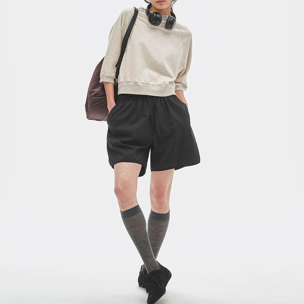 短めの着丈と軽めの生地感が生みだす落ち感が、スタイリングに自然な抜け感をプラスします。