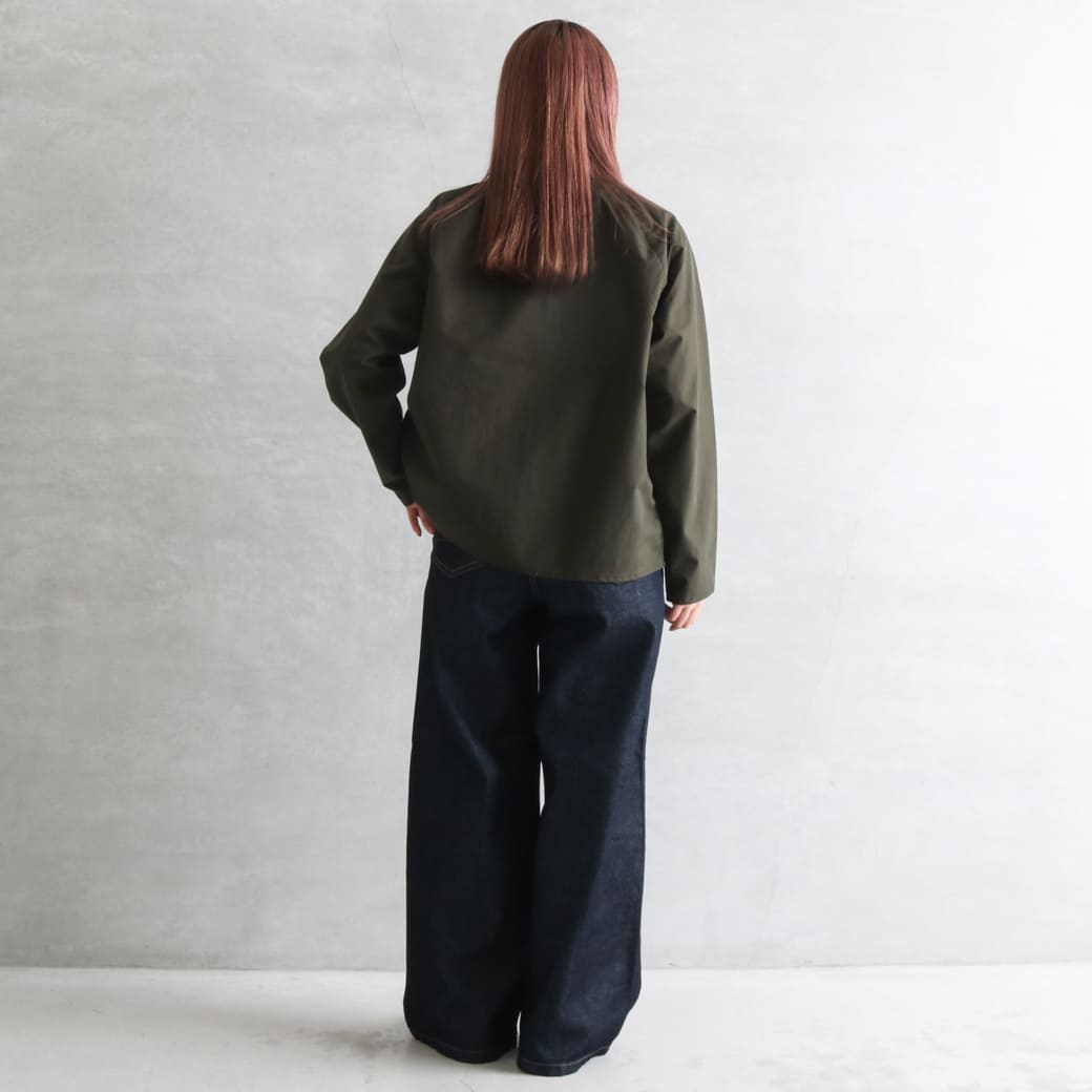 薄手ながらしっかりとした生地で、春アウターにオススメです。 身幅、袖周りは十分にゆとりがあるため、スウェットなどの上からでもラクラク羽織れます。 |
