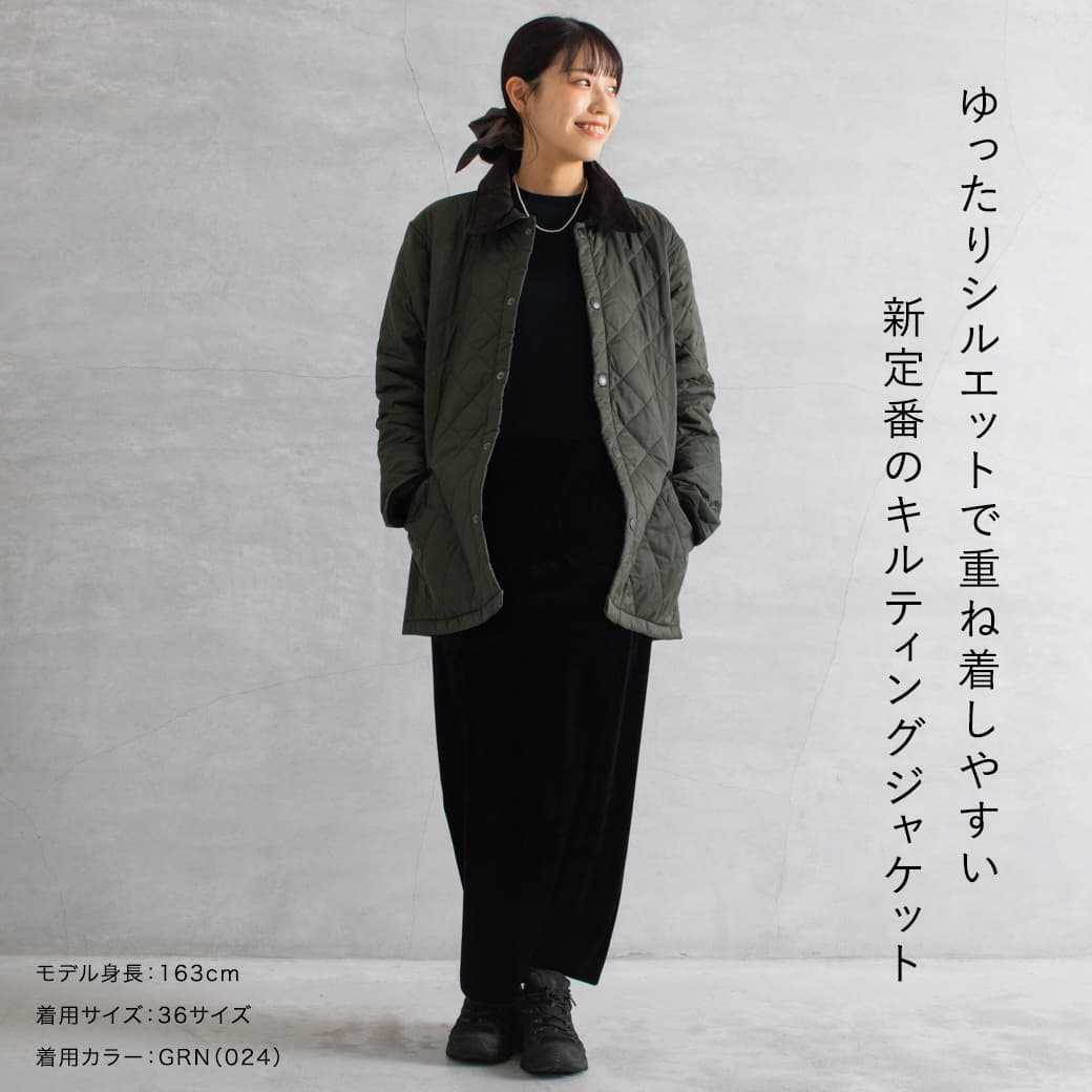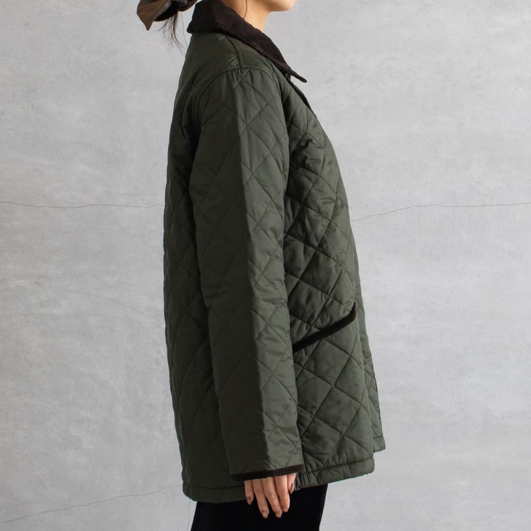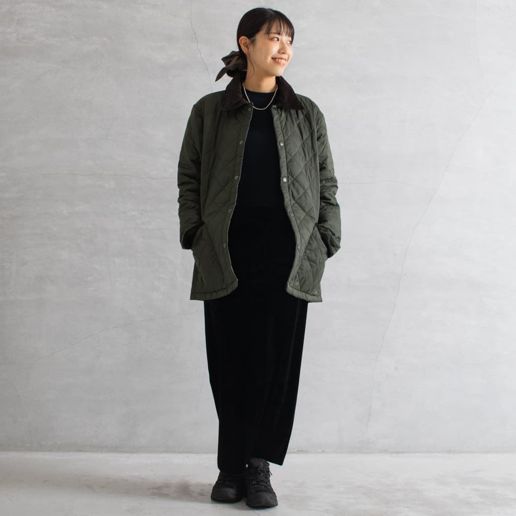 襟はコーデュロイになっており、キルティングの本体のアクセントに。