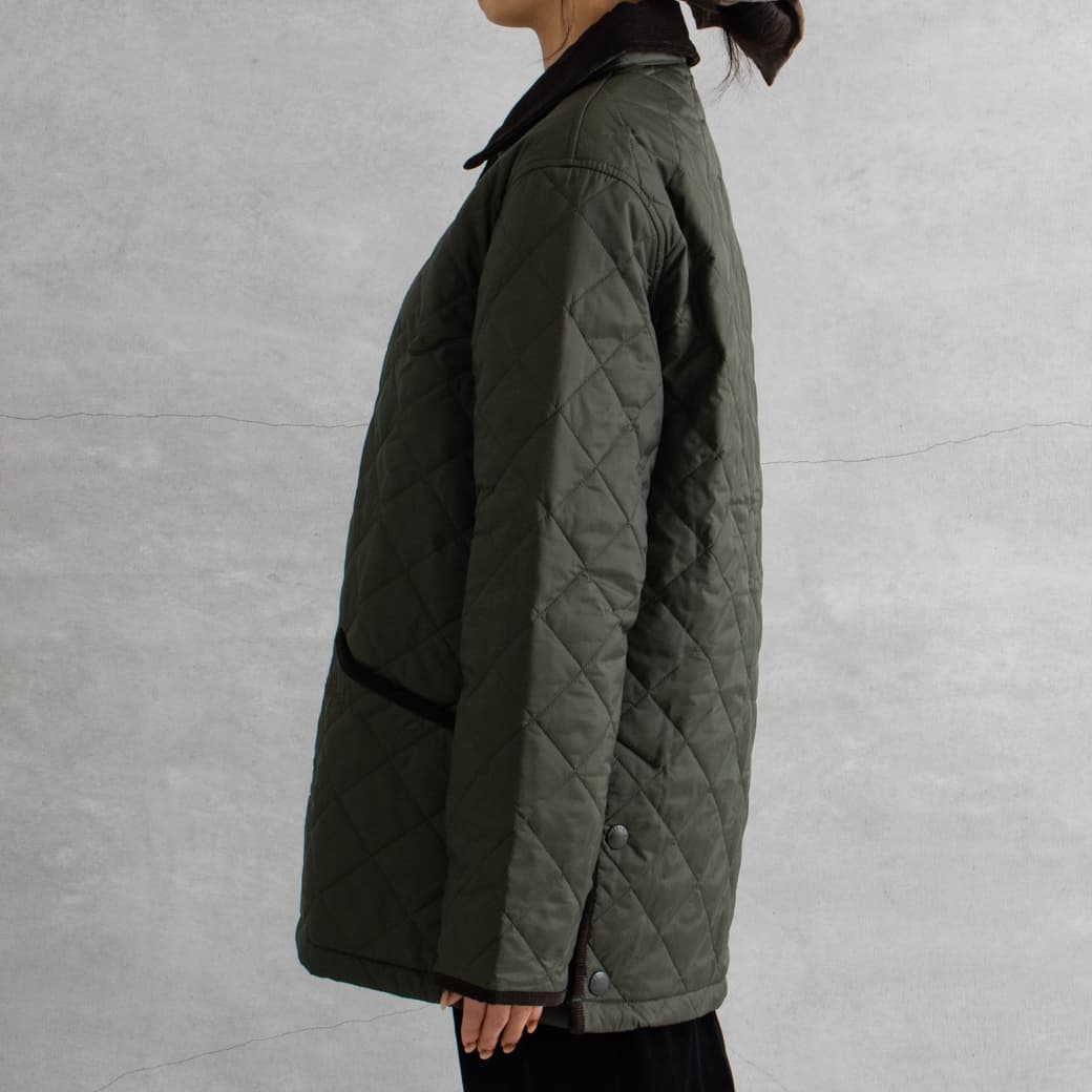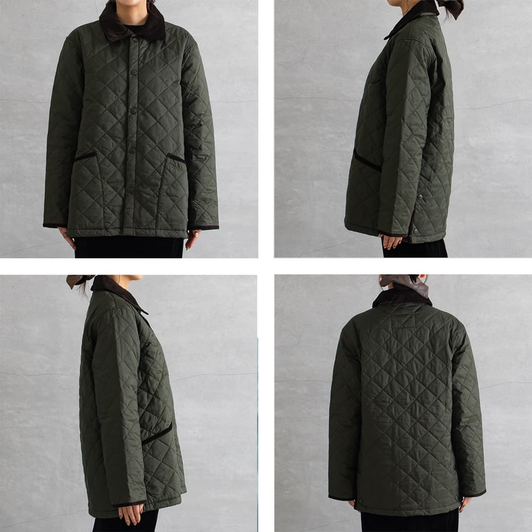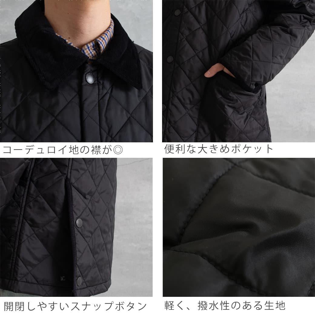 襟はコーデュロイになっており、キルティングの本体のアクセントに。