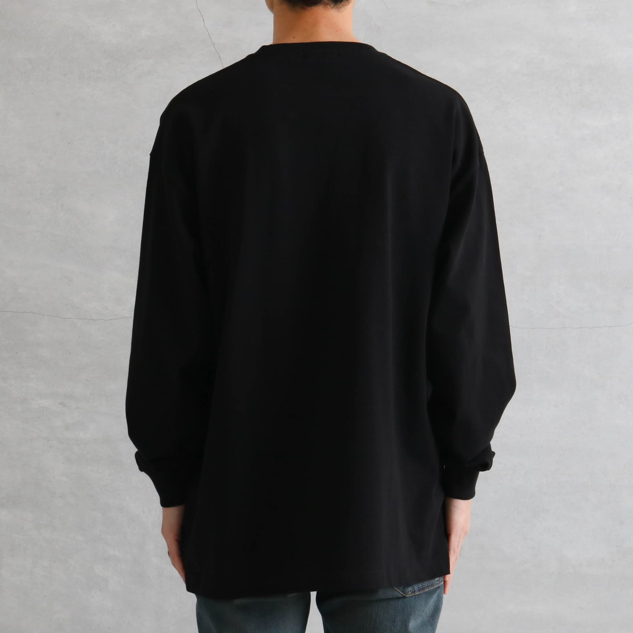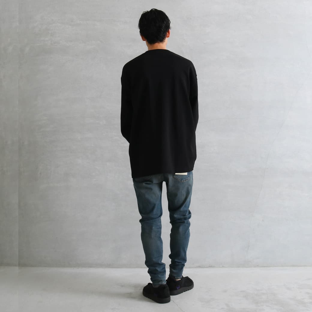ゆったりとしたオーバーサイズのTシャツです。 ロンTとスウェットの間のようなしっかりとした生地感でガシガシ使えそうです。 |