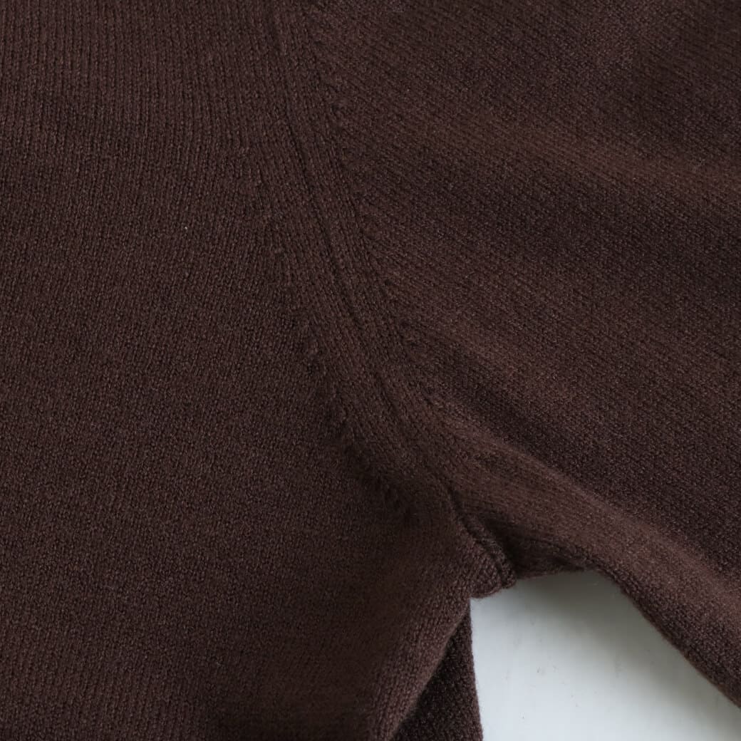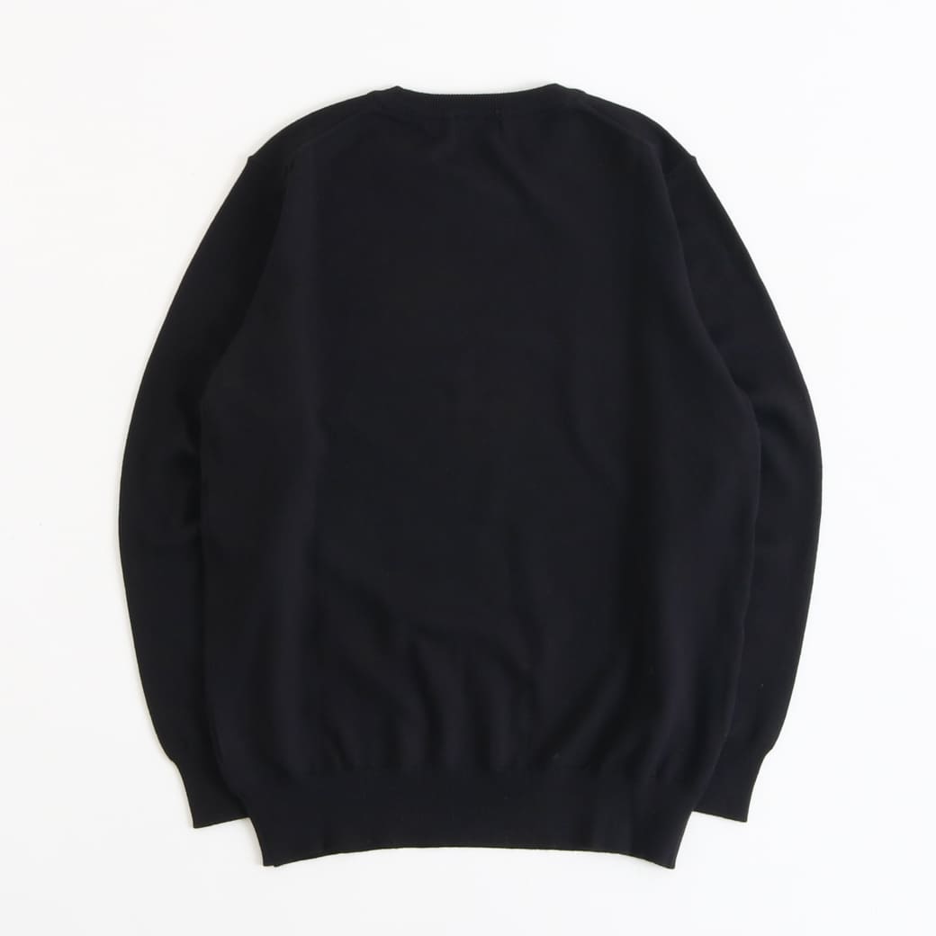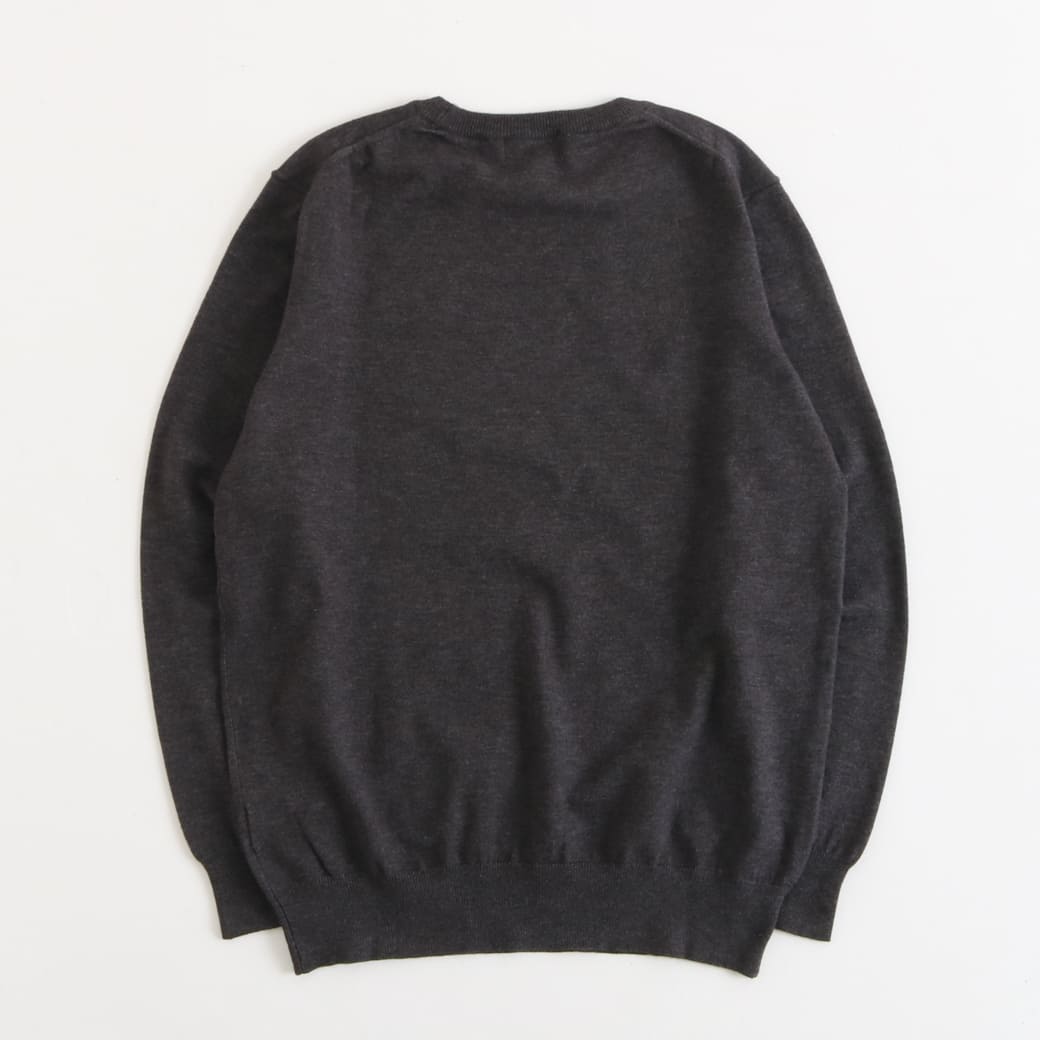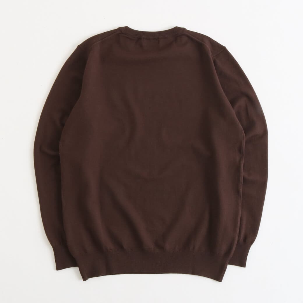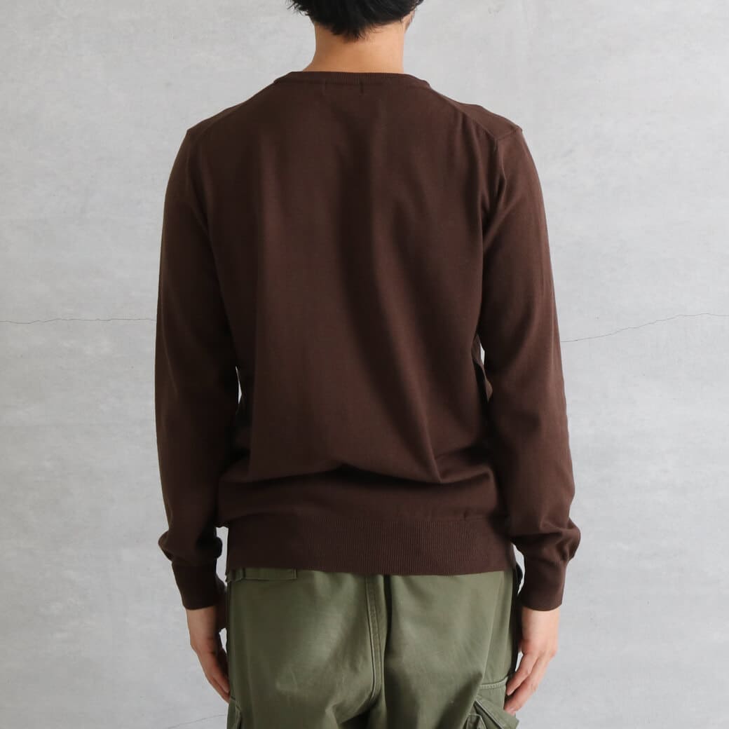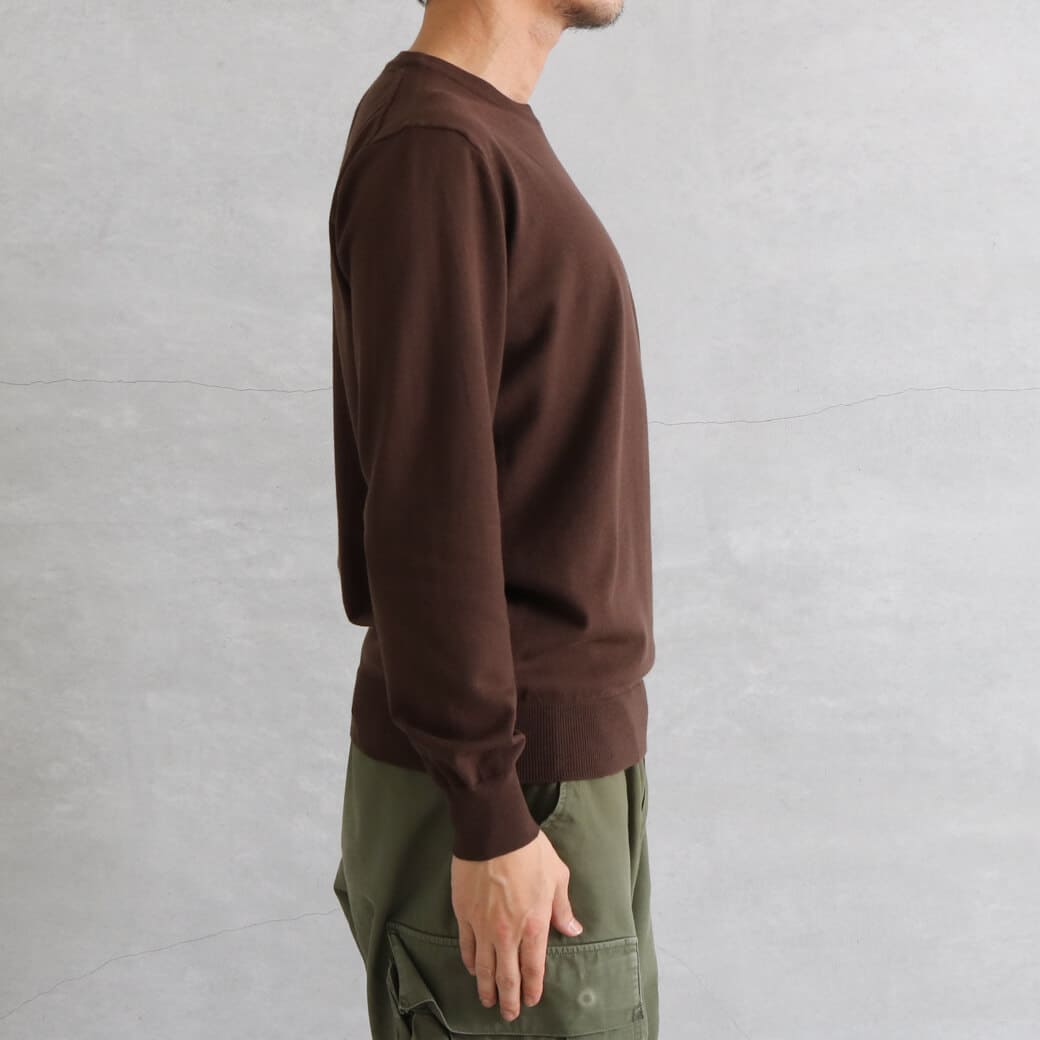 シンプルなクルーネックは、シャツやTシャツとのレイヤードも簡単。