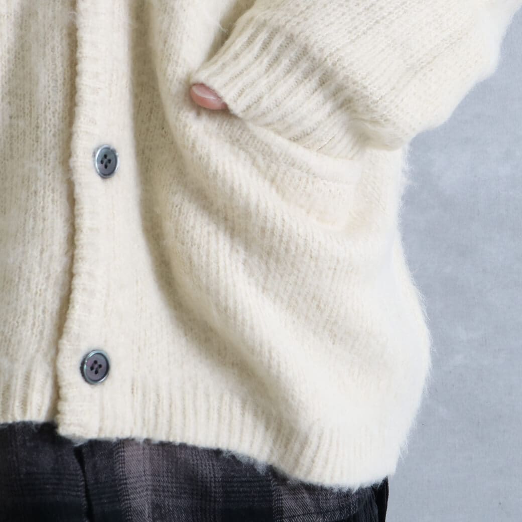 UNIVERD72(ユニバード72)より、毛並みの良いモヘア調に仕上げたトレンドライクなカーディガンの登場です。
