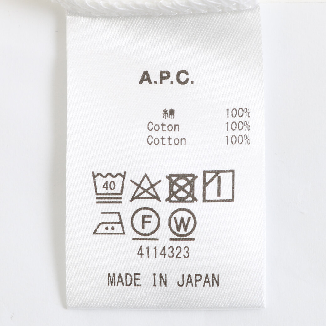 胸元に小さくブランドの名前である、コントラストをつけたAPCと刺繡されています。