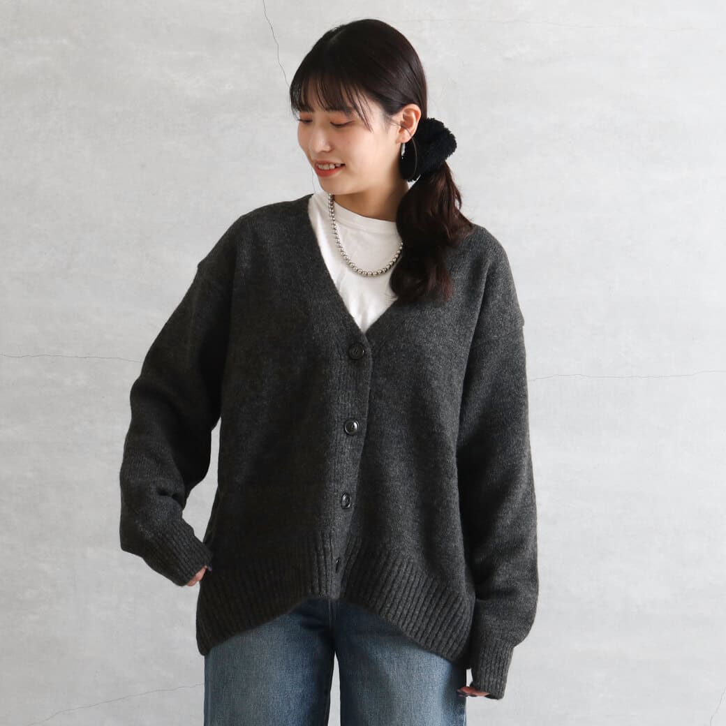 ゆるっとしたシルエットでブラウスやTシャツなどの上に羽織りやすいサイズ感です。