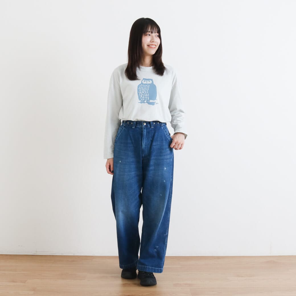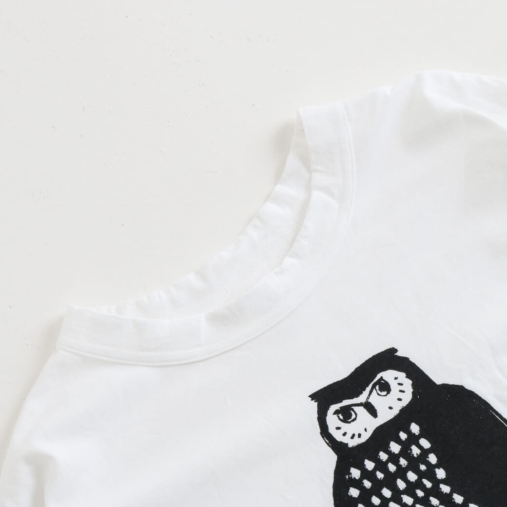 grin(グリン)より、優しい肌触りのコットン素材に、遊び心あふれるフクロウのプリントをあしらった長袖Tシャツの登場です。