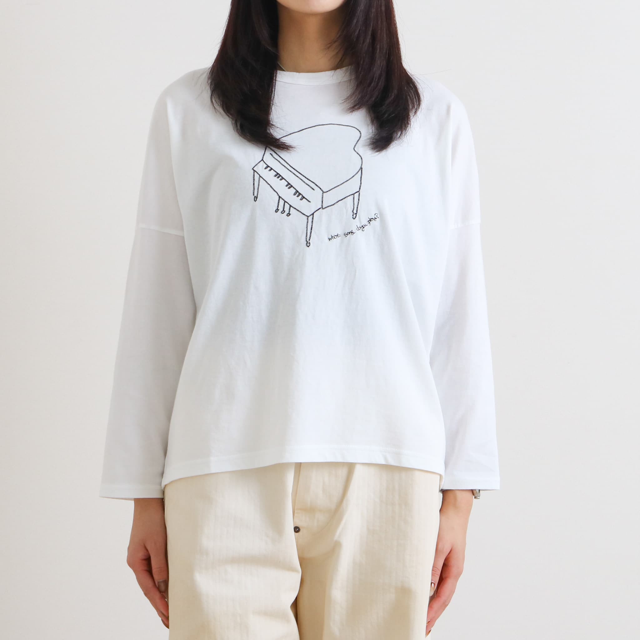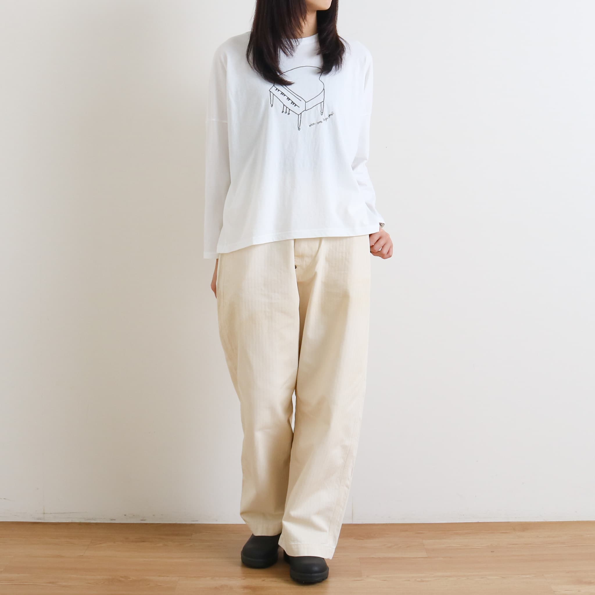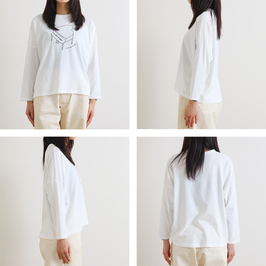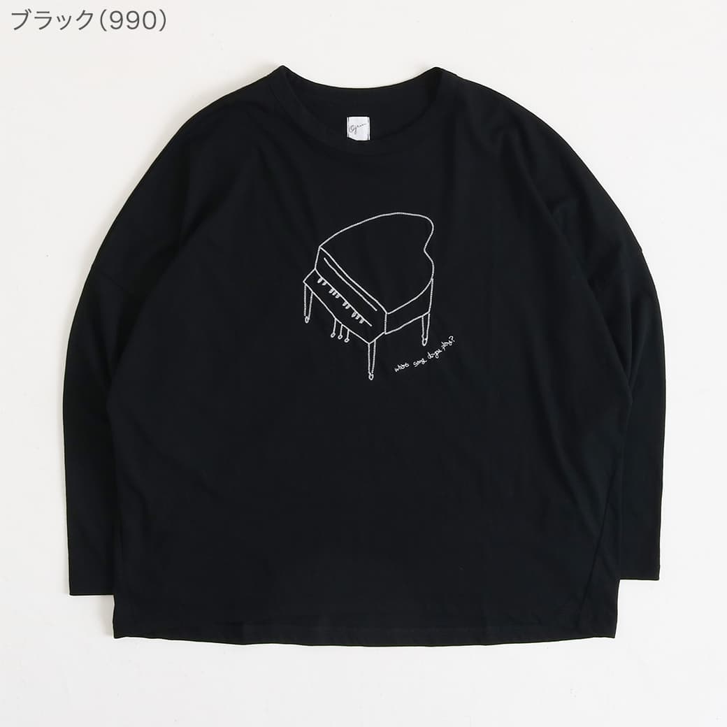 grin(グリン)より、フロントに配置されたピアノのグラフィックが印象的な長袖Tシャツの登場です。