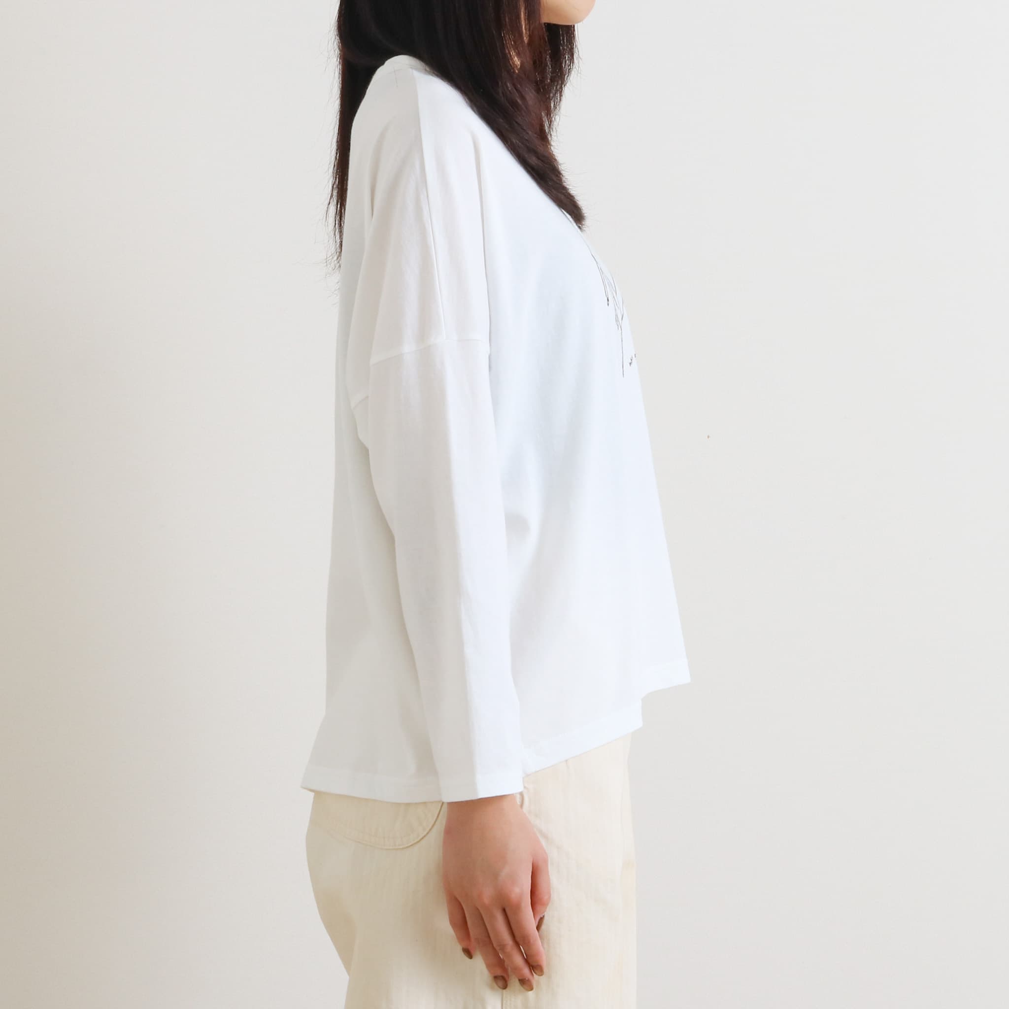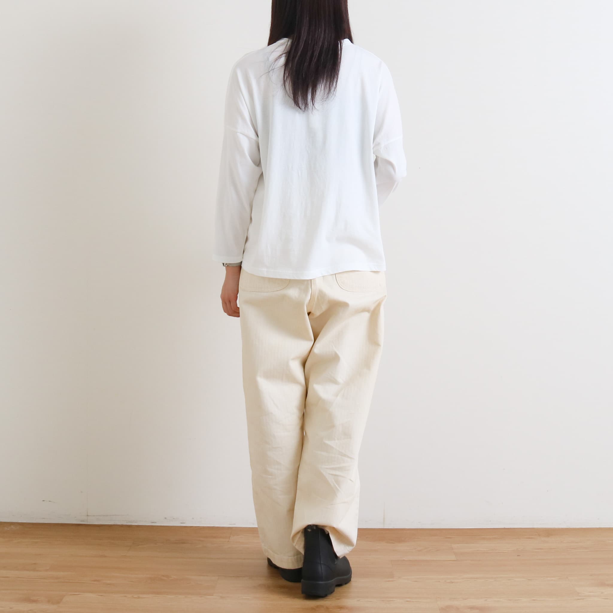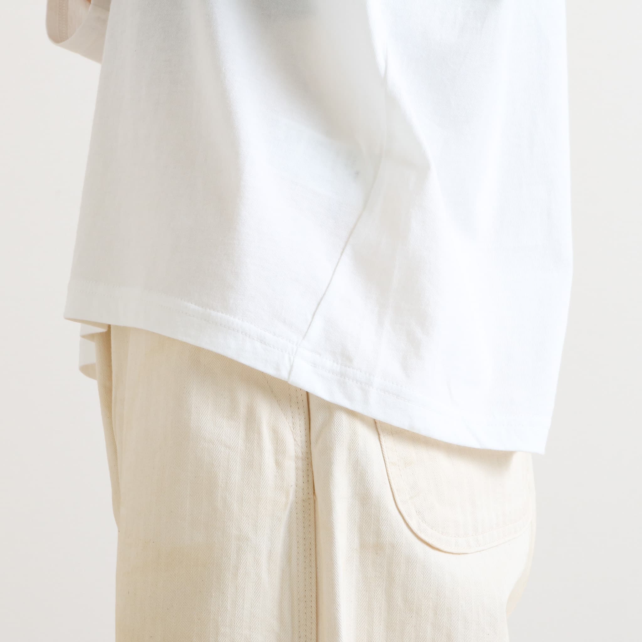 ややゆとりのあるボックスシルエットが体のラインを拾わず、リラックス感あるスタイリングに仕上がります。