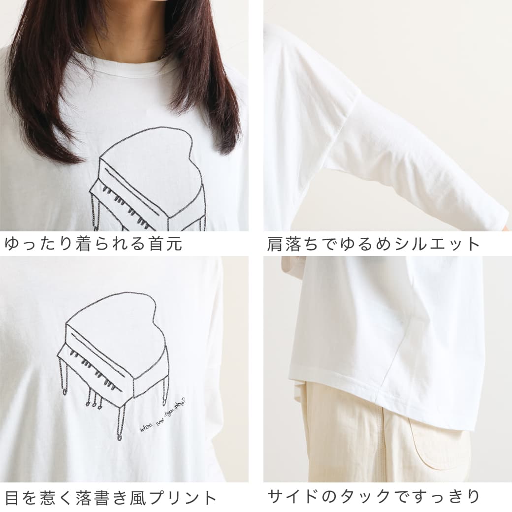 プリントには落書き風のピアノが描かれ、シンプルながらもアーティスティックな雰囲気を演出してくれます◎