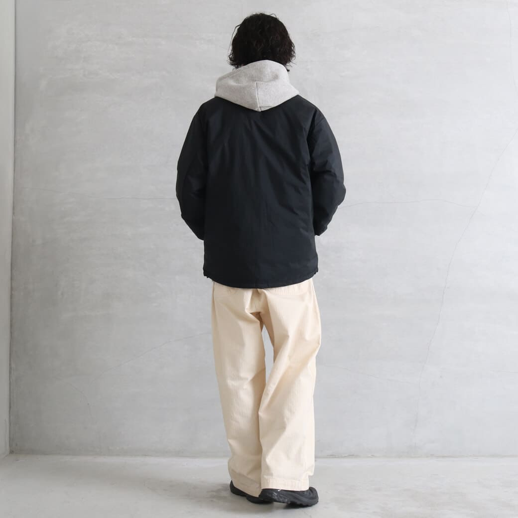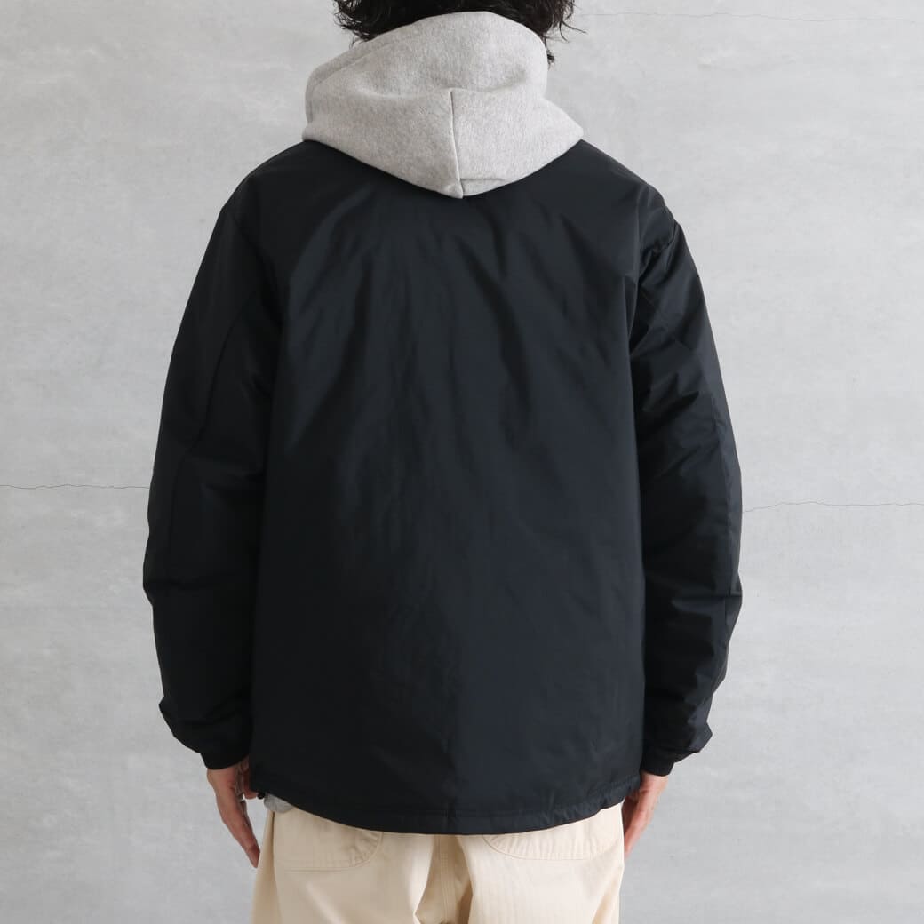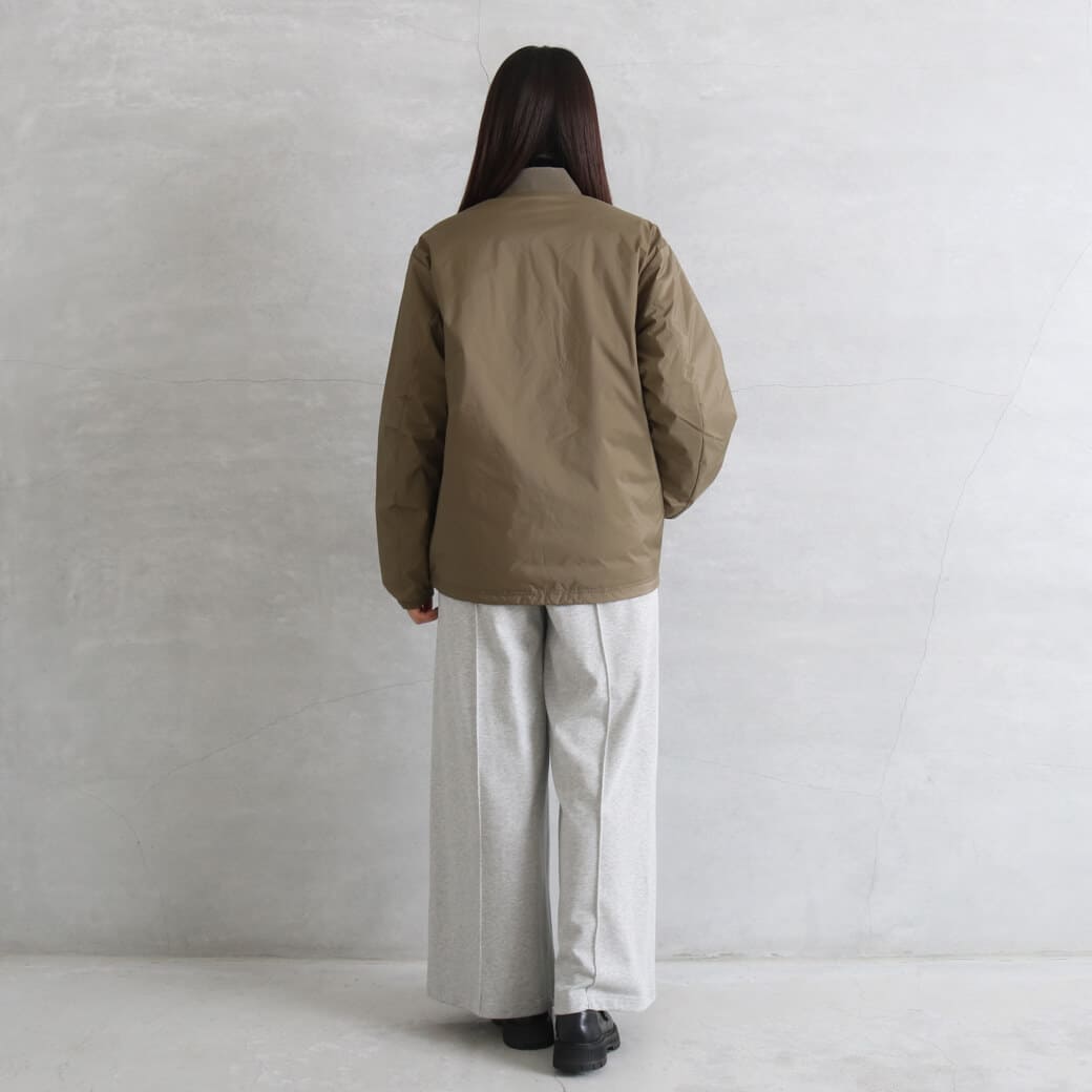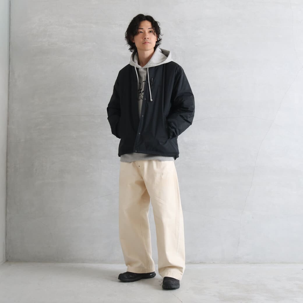 形はコーチジャケット首元はブルゾンといった、それぞれのジャケットのいいとこ取りをしたハイブリッドデザイン。
