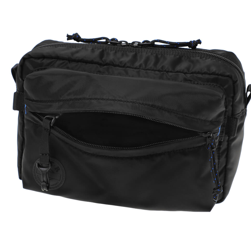 ショルダーパックはコンパクトながらペットボトルや折り畳み傘が入るサイズで、見た目以上の収納力に優れたアイテムです。ショルダーストラップを短くすることで、ウエストバッグのようにも使用可能です。
