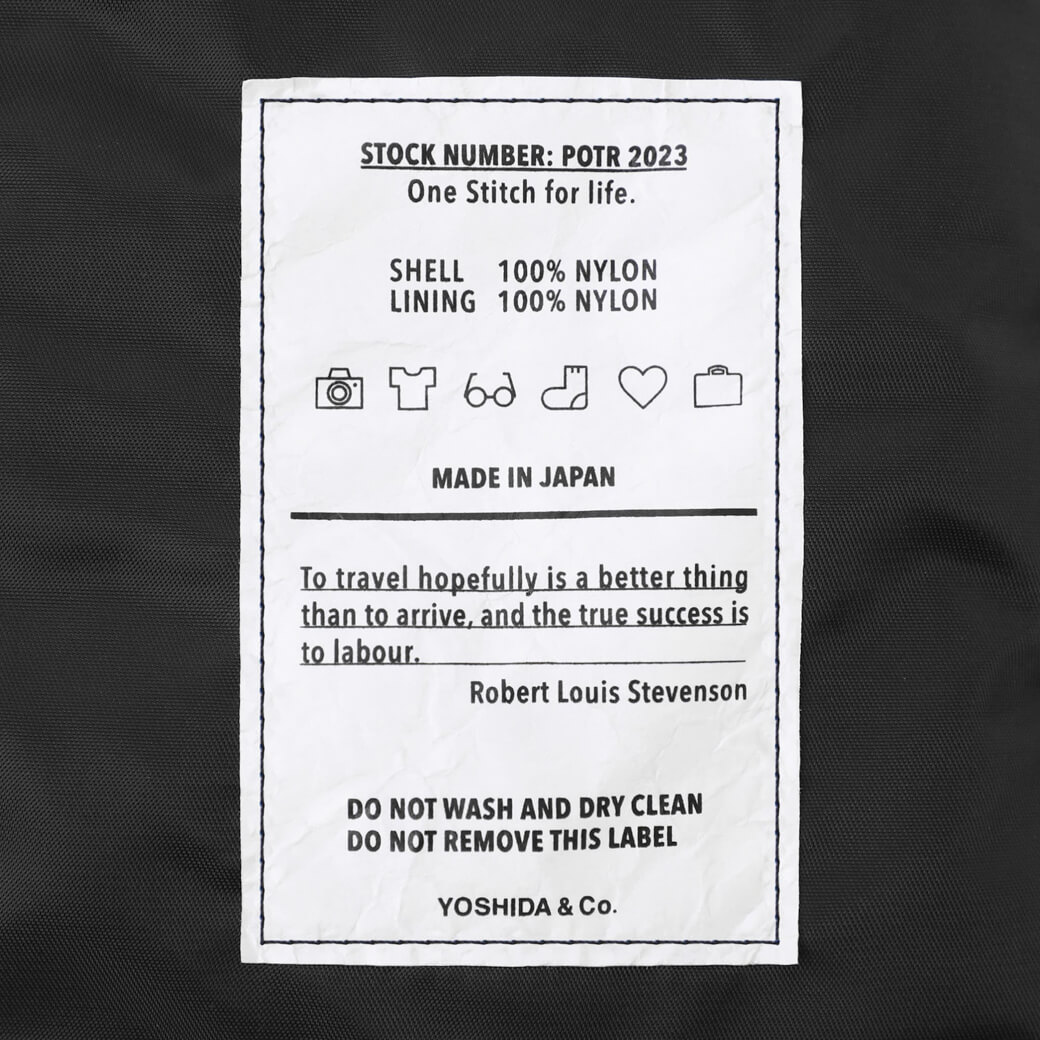 内装にはロバート・ルイス・スティーヴンスン※の言葉を載せたタイベック素材のタグが付きます。