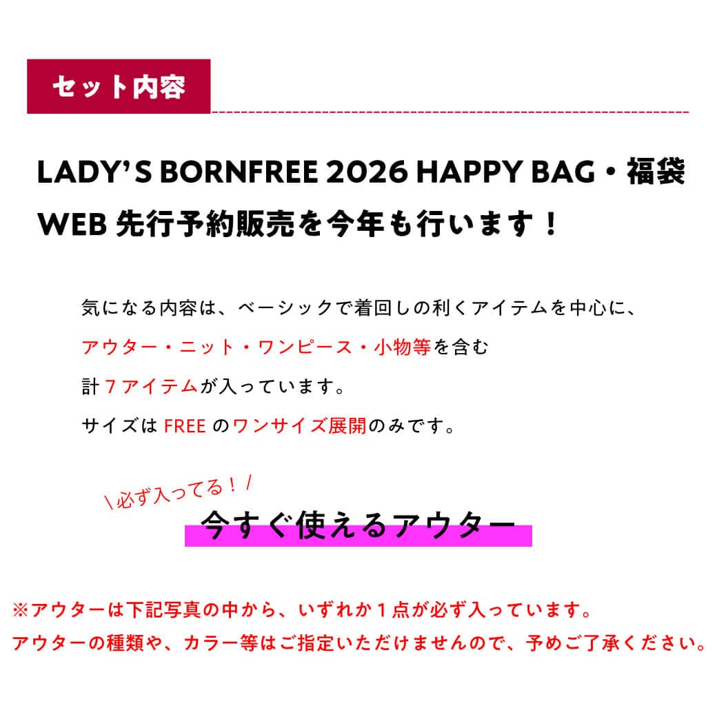 LADY'S BORNFREE 2026 HAPPY BAG・福袋、WEB先行予約販売を今年も行います。