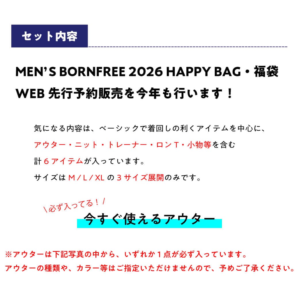 MEN'S BORNFREE 2026 HAPPY BAG・福袋、WEB先行予約販売を今年も行います。