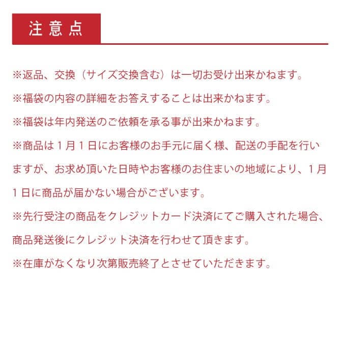 - ※福袋予約販売はWEBSHOP限定の特別企画の為、店頭では予約を承ることが出来かねますので、ご了承下さいませ。