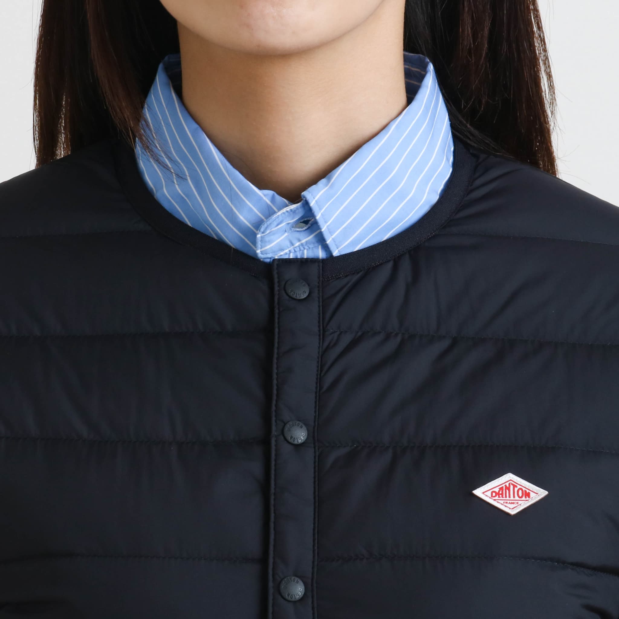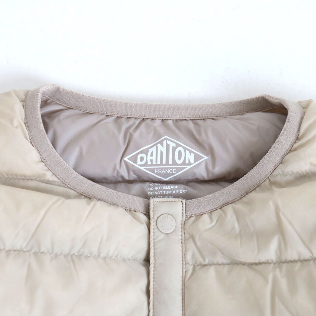 DANTONから、大人気のノーカラータイプのインナーダウンジャケットのご紹介です。