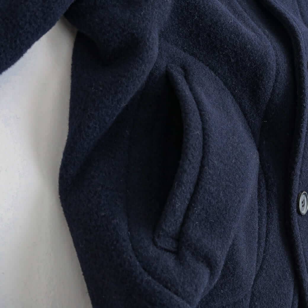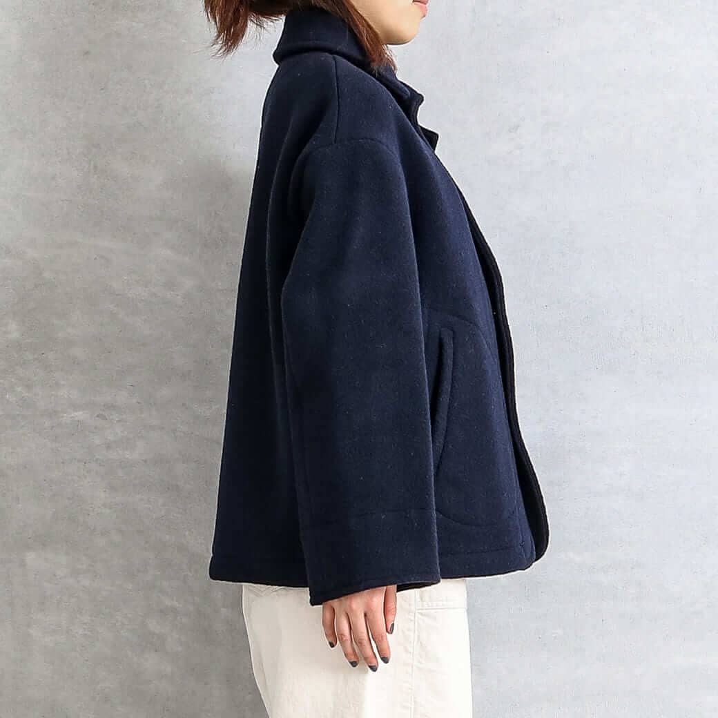 ゆったりした身幅とやわらかくて軽いウールパイルな生地感、今の気分にピッタリのアウターです。