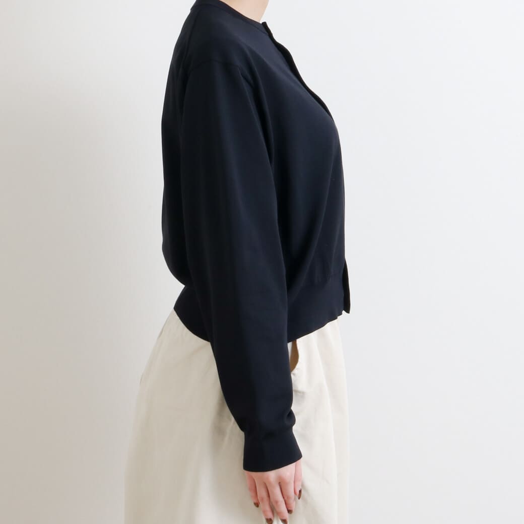 春夏にぴったりな、清涼感のある軽やかなハイゲージニットを使ったカーディガン。