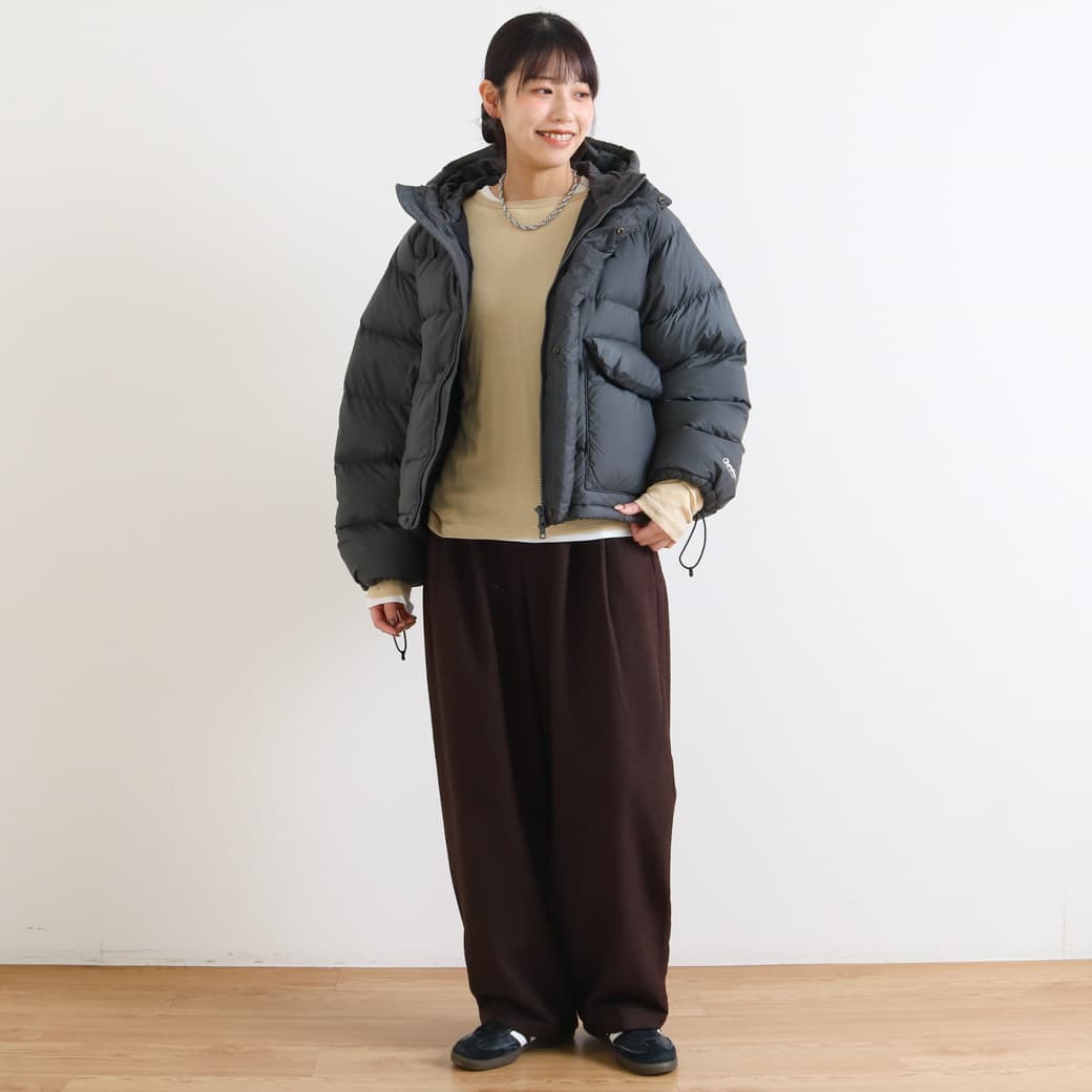 包み込まれるような着心地で、安心感がありました。 ボリュームがありますが、とっても軽く長時間着ていてもつかれなさそうです。 ゆとりのある着心地で肉厚のニットなども着こめます。 |