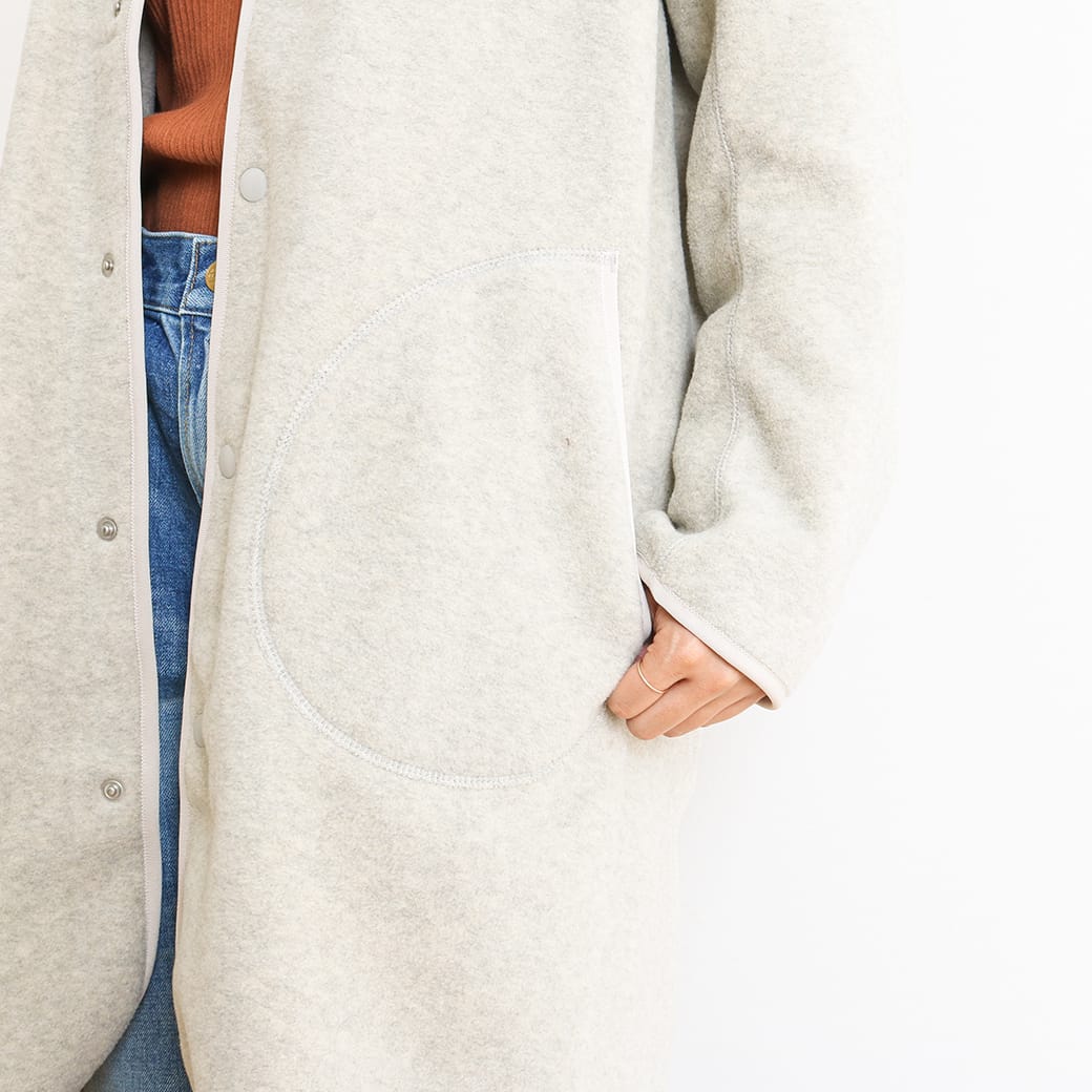 毎年人気のフリースカーディガンのロングタイプは、落ち着いたルックスで着こなしを大人な印象に仕上げてくれる一枚です。