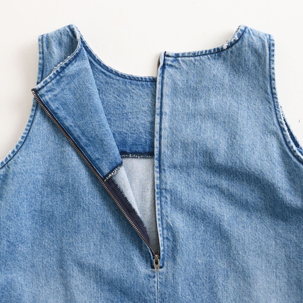 肩はノースリーブで涼しげに、インナーを合わせればロングシーズン活躍。