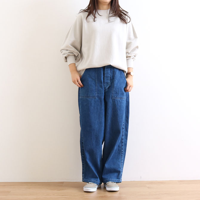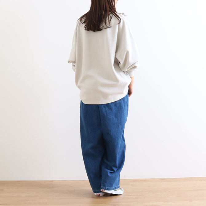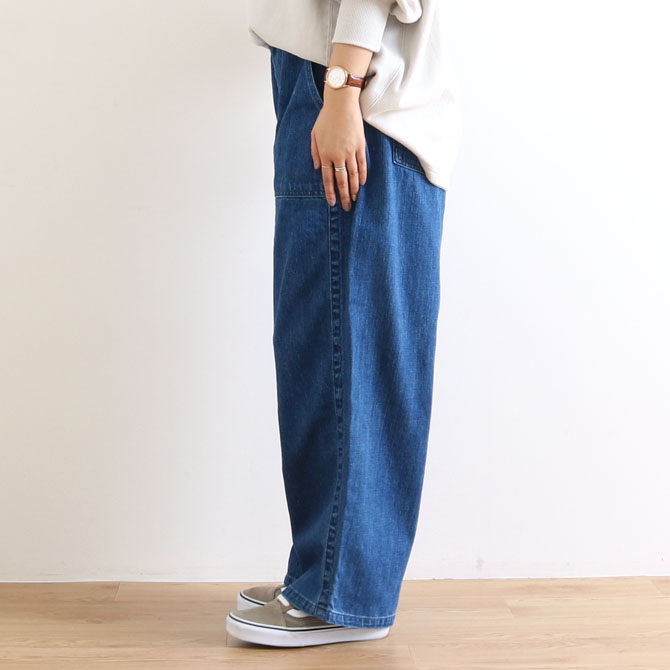 ゆったりとしたトップスでラフなスタイルにはもちろん、ブラウスやカットソーなどすっきりとしたトップスなど、カジュアルだけでなく、きれいめなスタイルにも取り入れていただきやすいシルエットに仕上げた一本です。