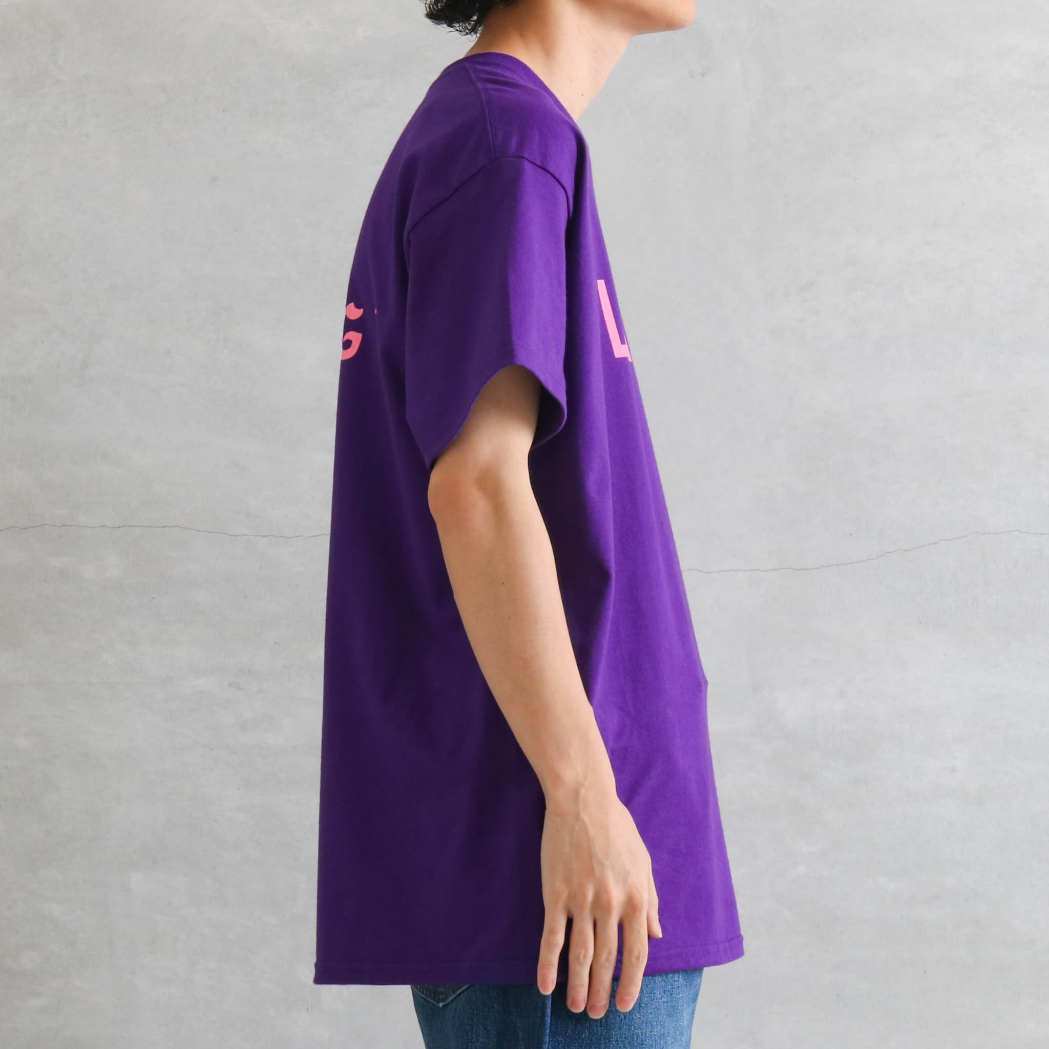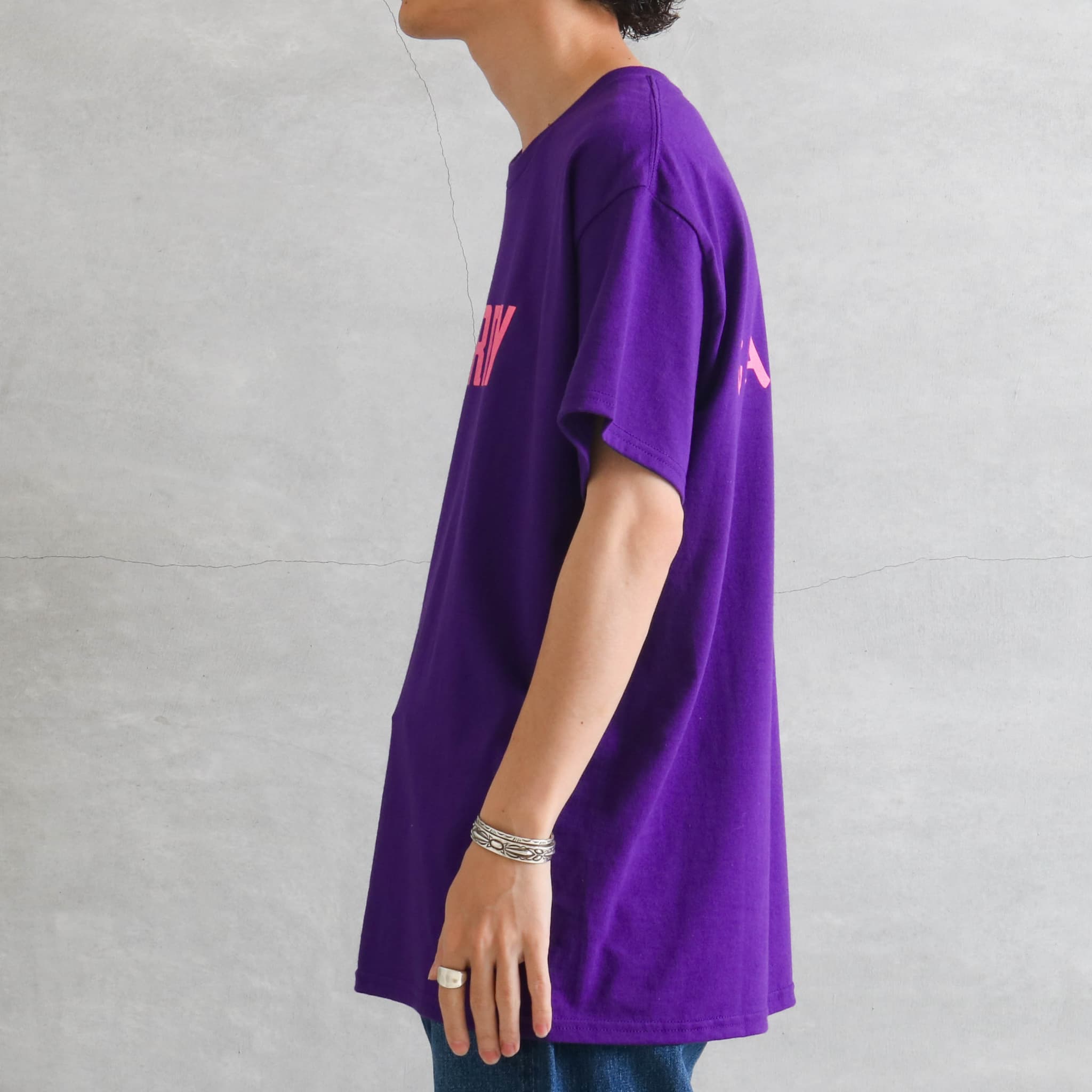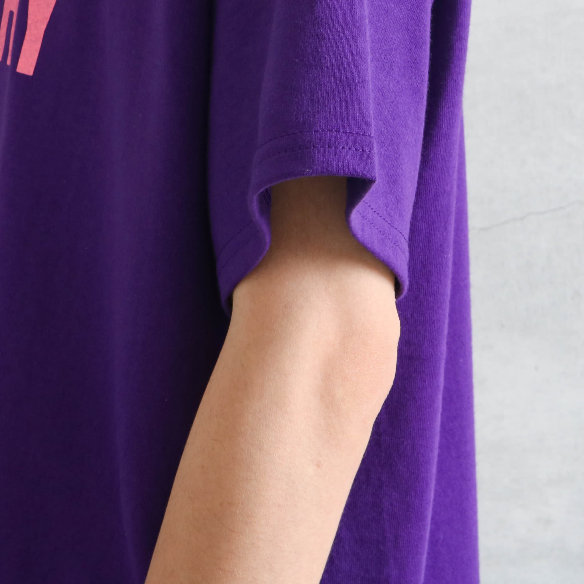 蛍光色のロゴが目を惹くコーデの主役となる一枚です。