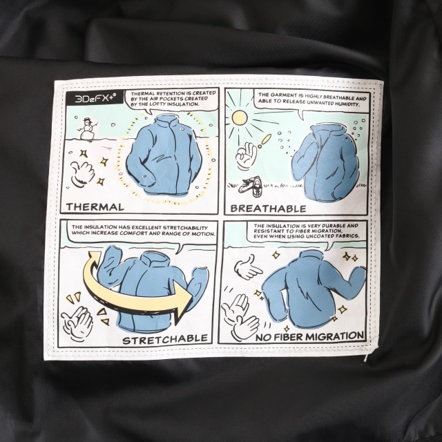 伸縮性や保温性など機能にも優れた3DeFX中綿を採用しています。