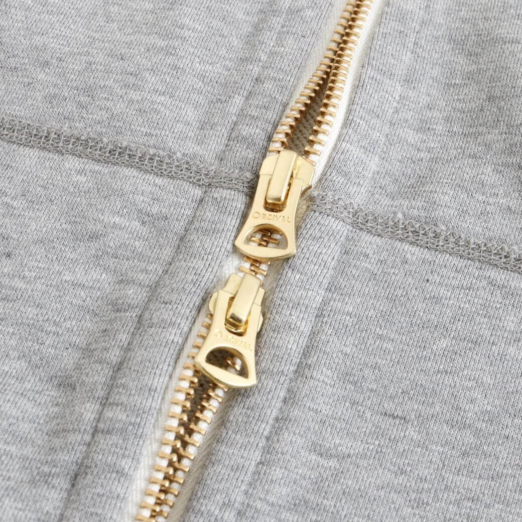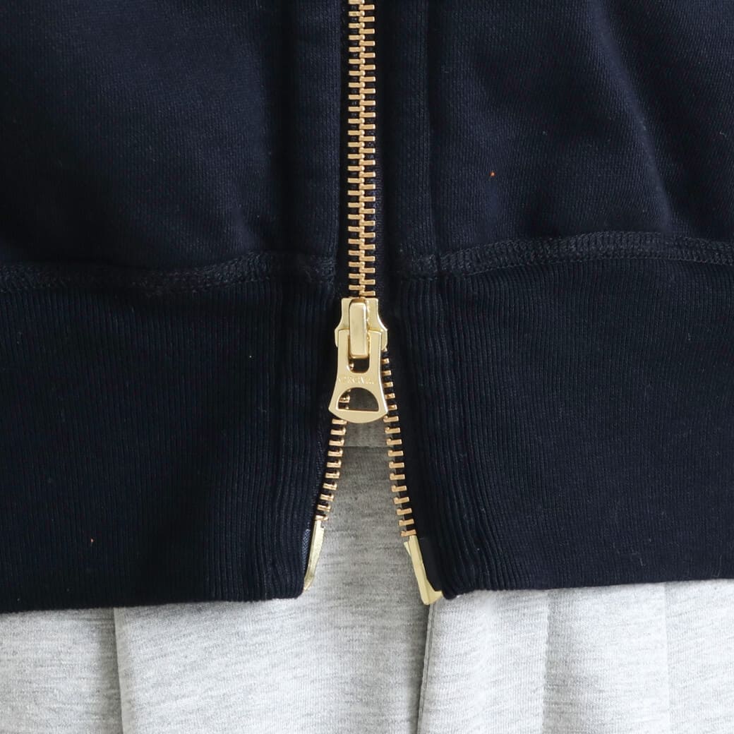 フロントのゴールドのダブルジップは上質感をプラスし、着脱のしやすさも兼ね備えています。