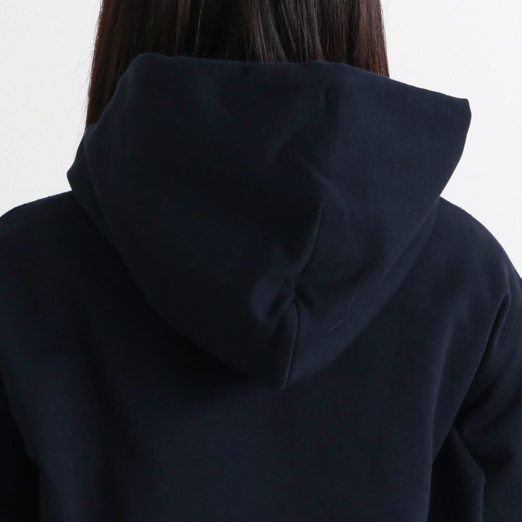 フードは立体感のある二枚仕立てで、首回りに自然なボリュームを演出。