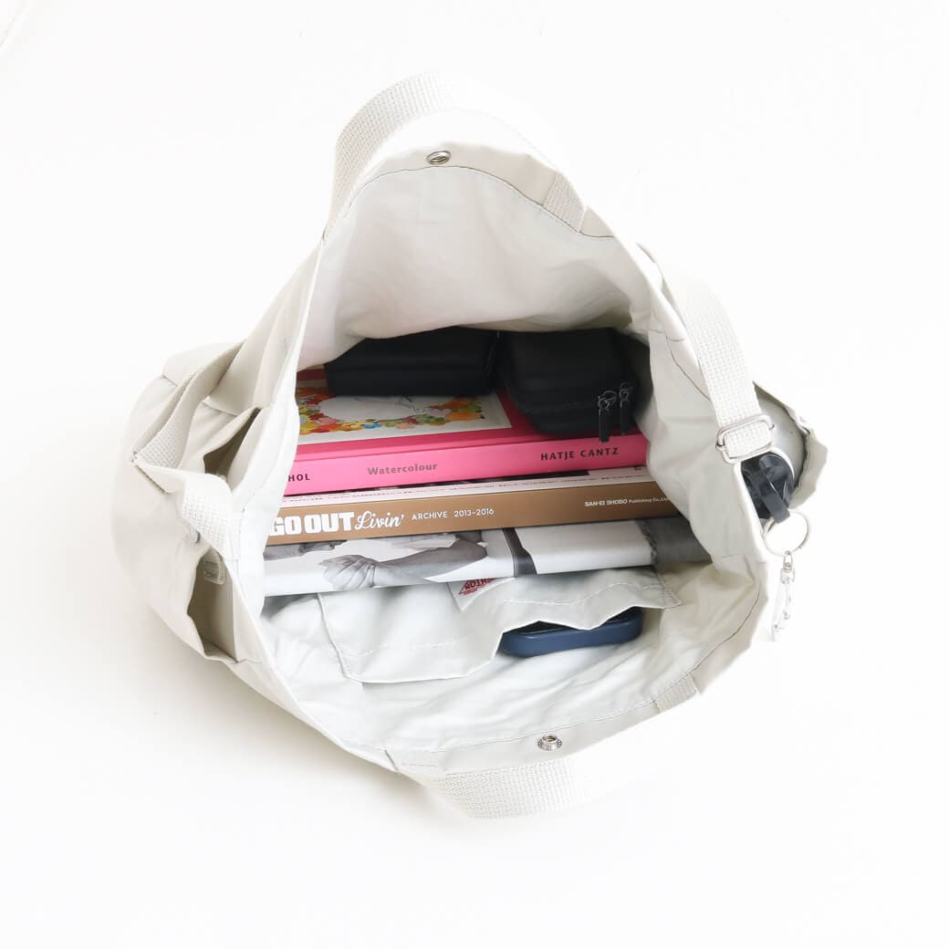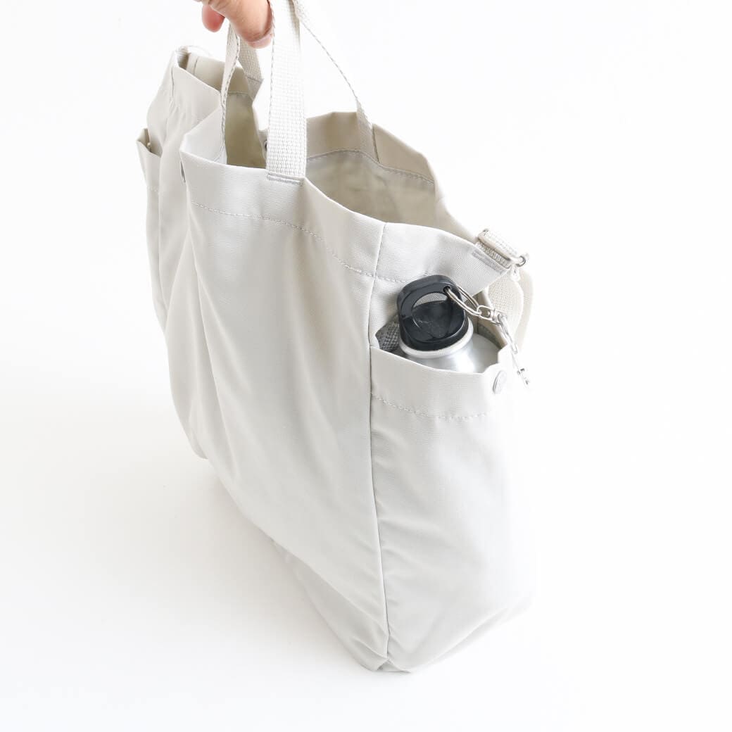 広めのマチで収納力も抜群な上に、内側と本体両側面にポケットを配備しています。
