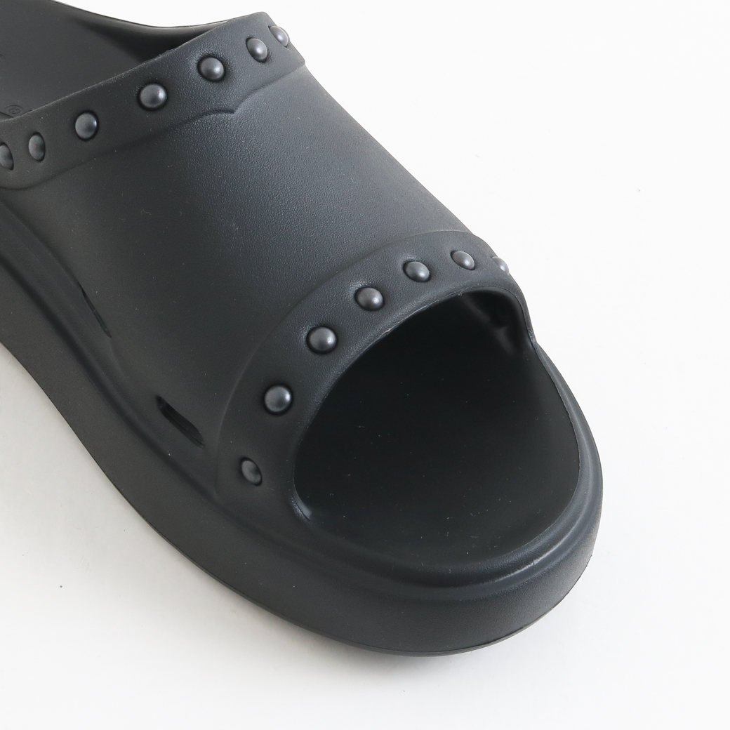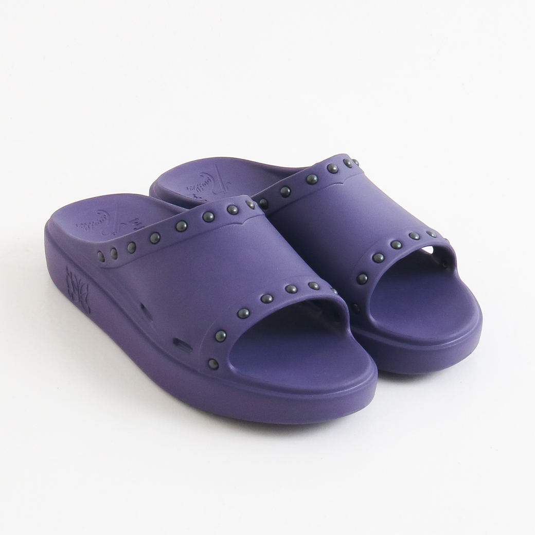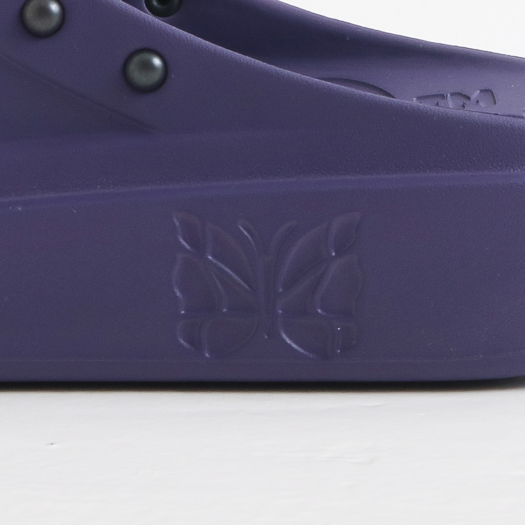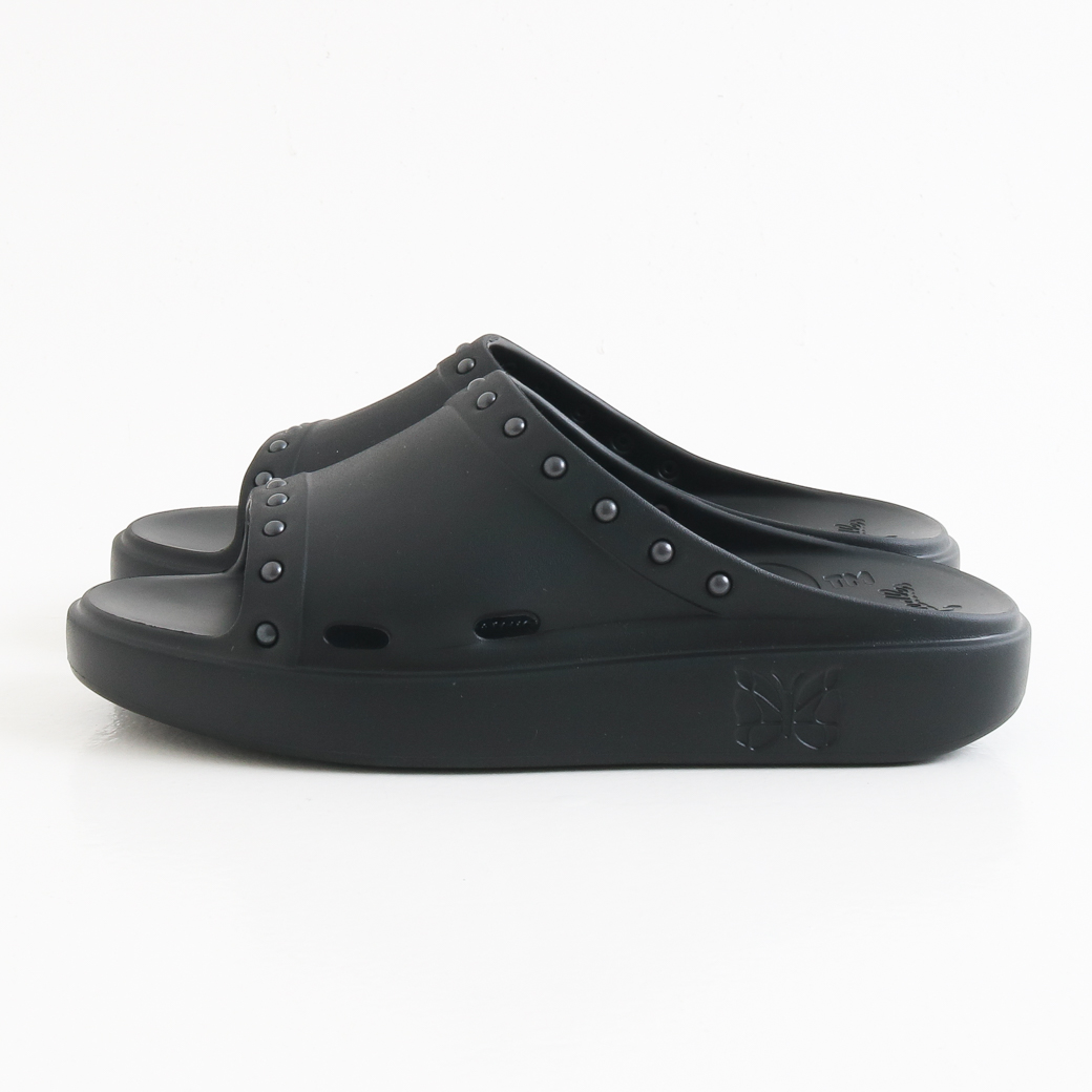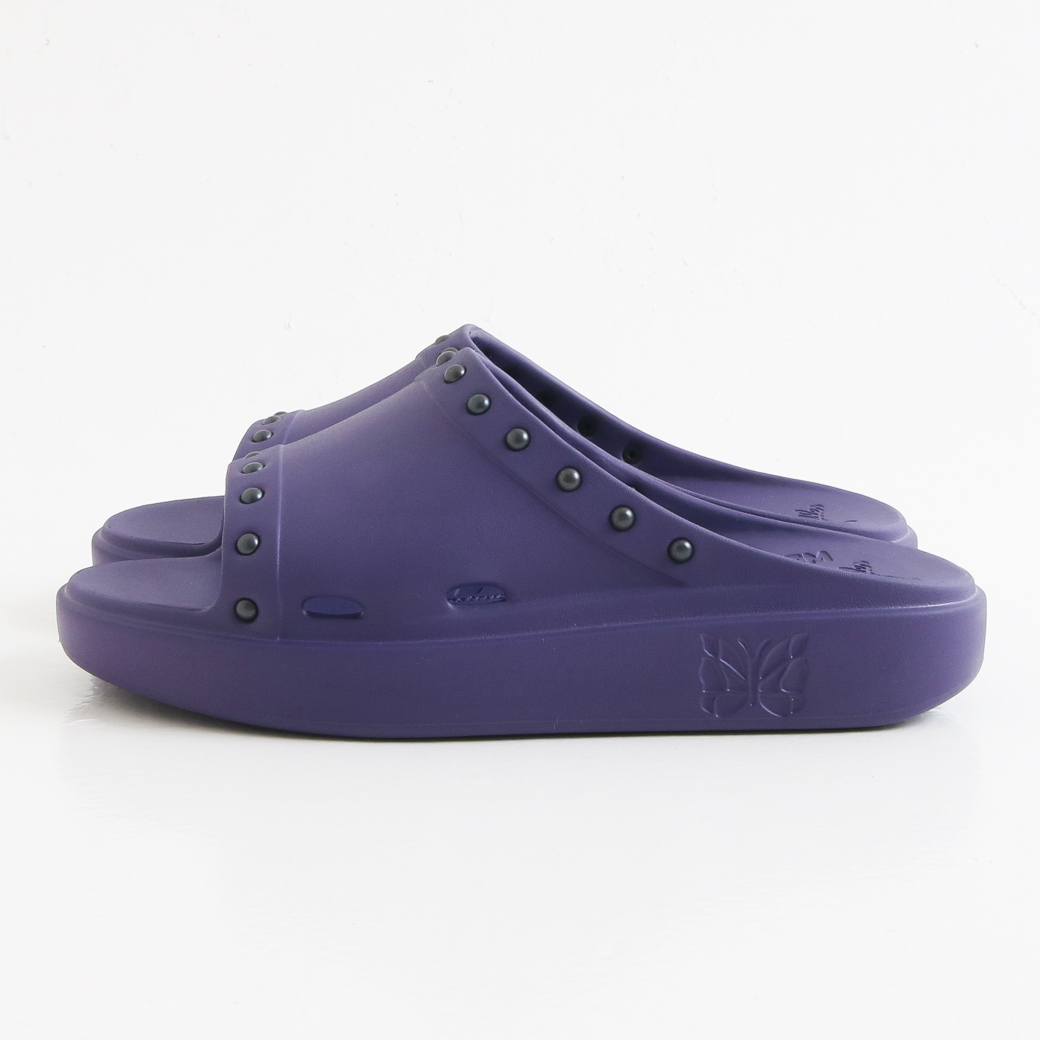 クッション性のある履き心地を実現しています。また、履き口周りに配されたスタッズやソールに刻まれた〈NEEDLES〉のロゴが個性を引き立てます。