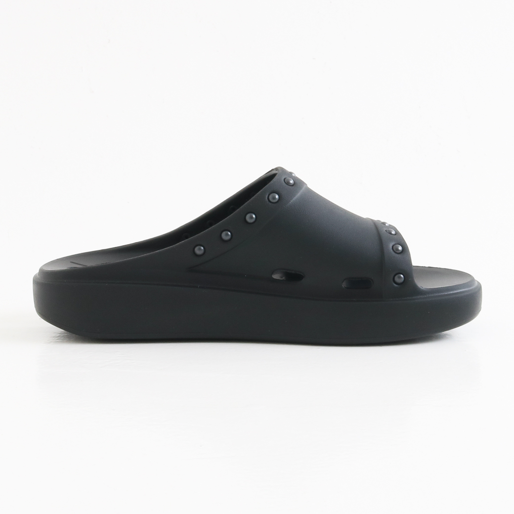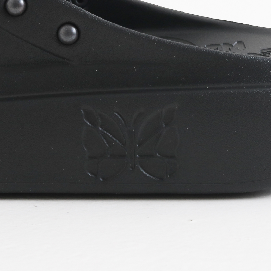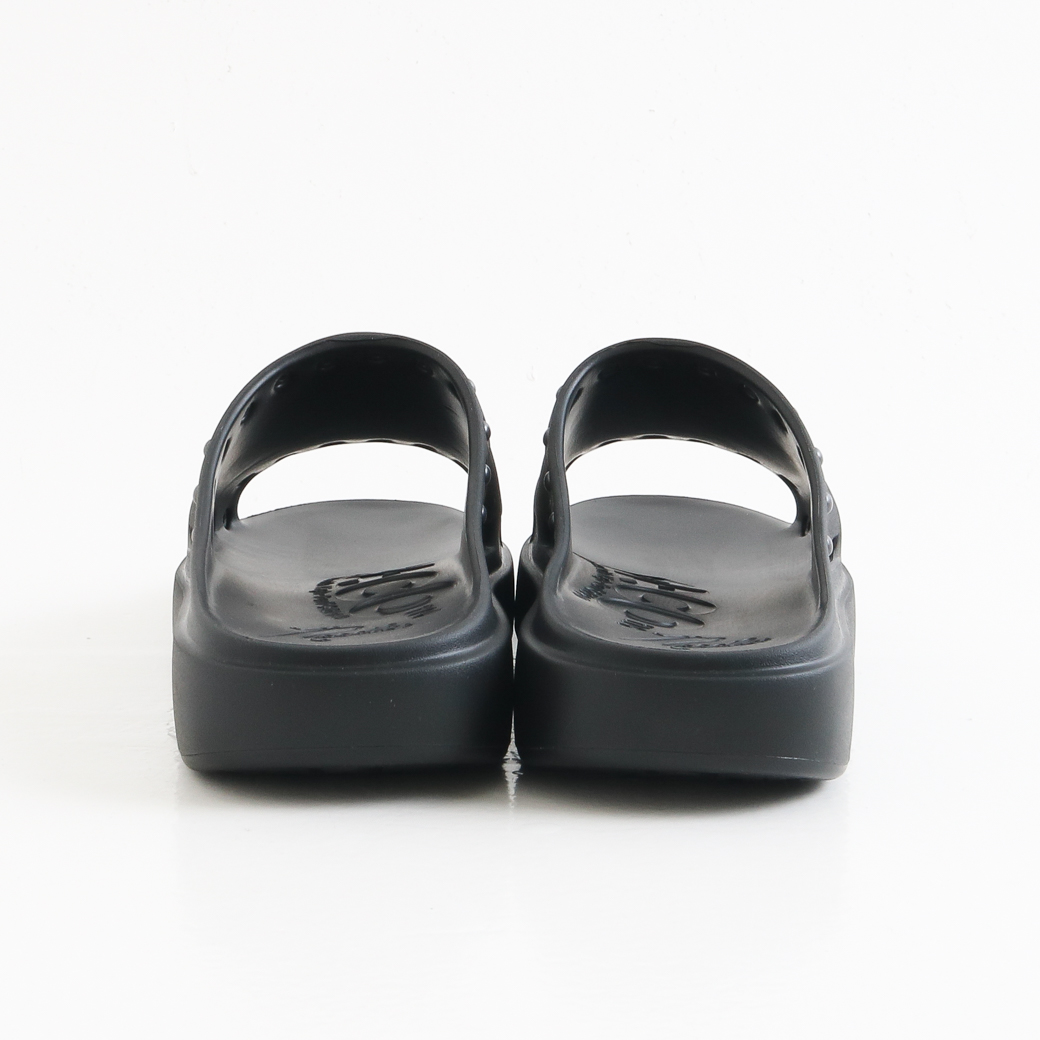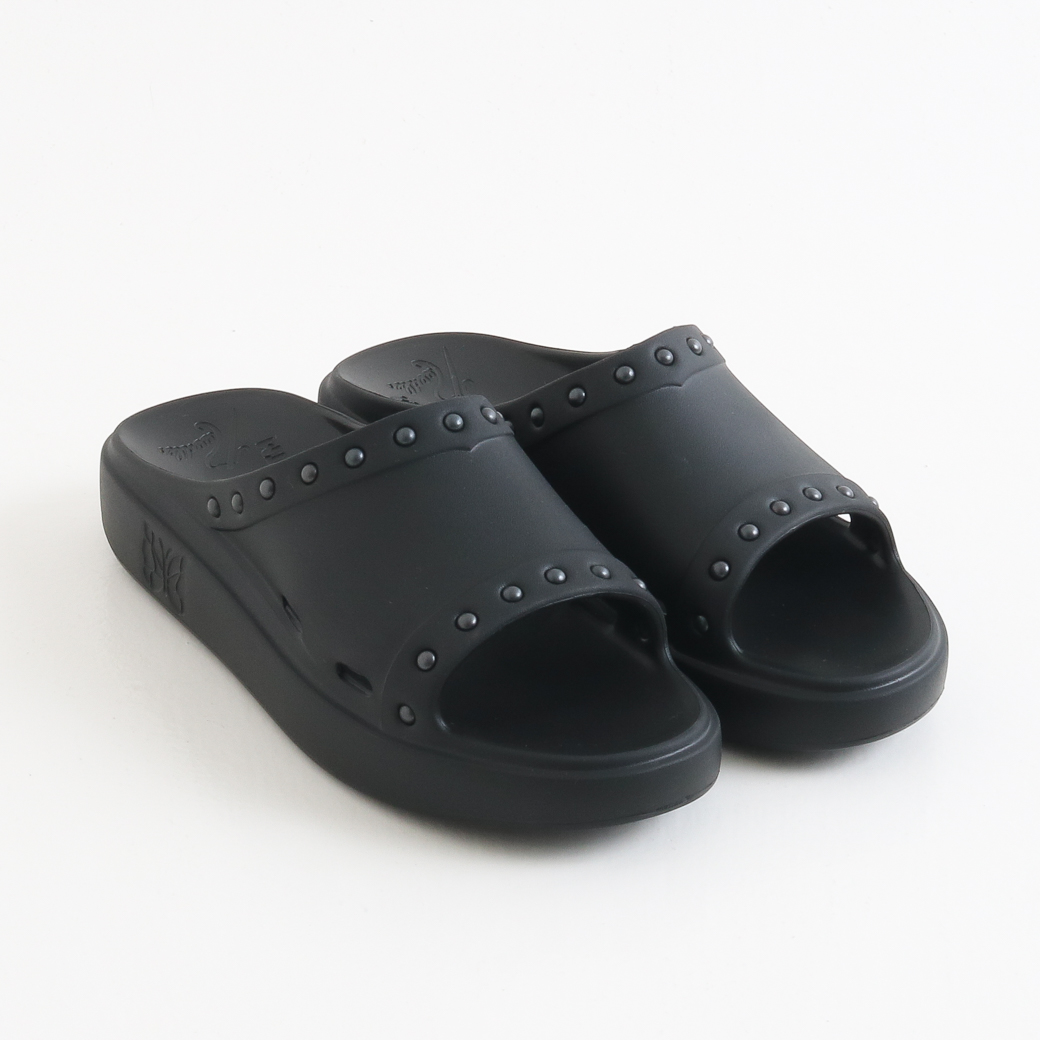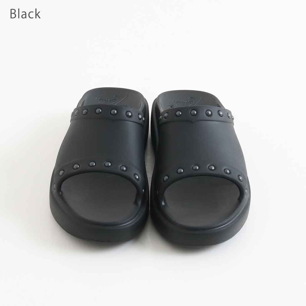 クッション性のある履き心地を実現しています。また、履き口周りに配されたスタッズやソールに刻まれた〈NEEDLES〉のロゴが個性を引き立てます。