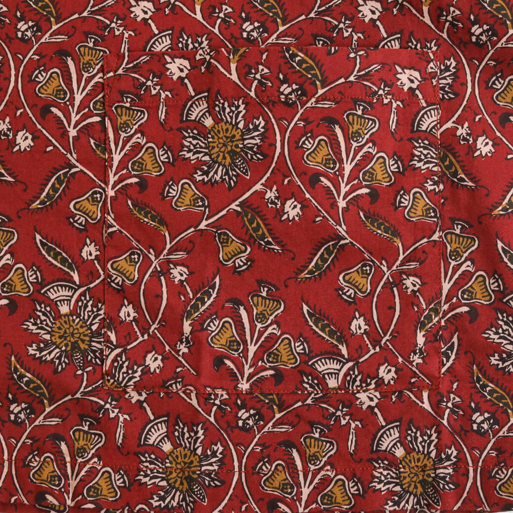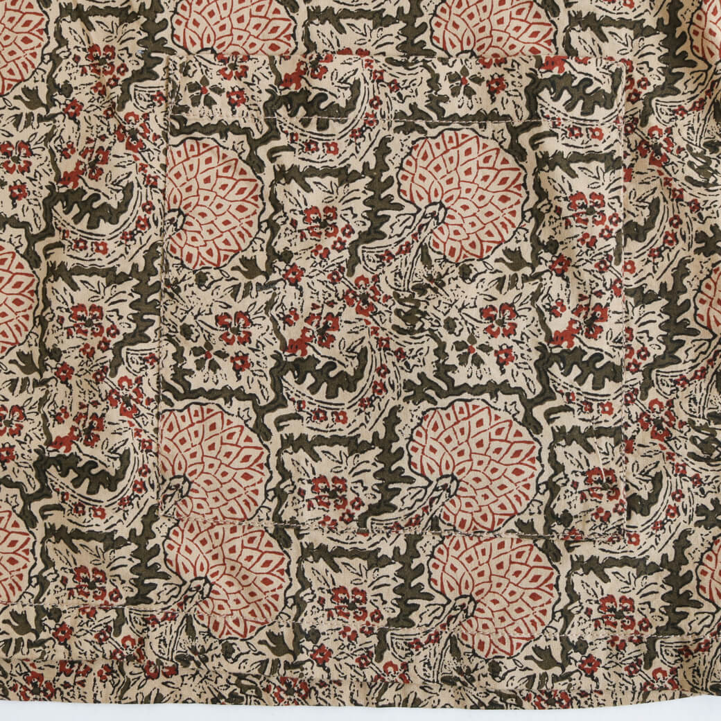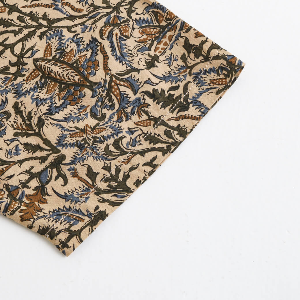 インド原産の「バティックプリント」による独特の柄は、アロハシャツとは一線を画す奥深い風合いが特徴です。