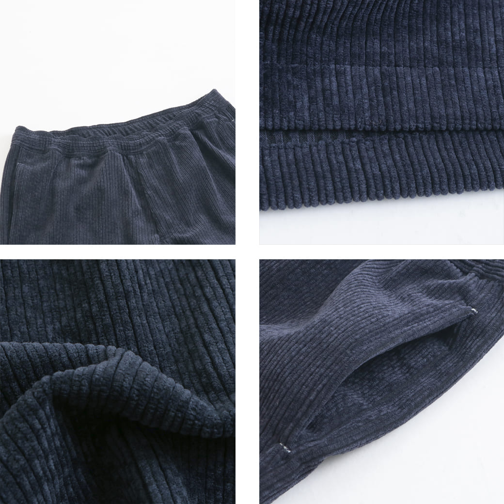 サマーコーデュロイ特有の豊かな表情はそのままに、優れた伸縮性を加えることで、アクティブな動きにもストレスなく対応する一着へと進化した。