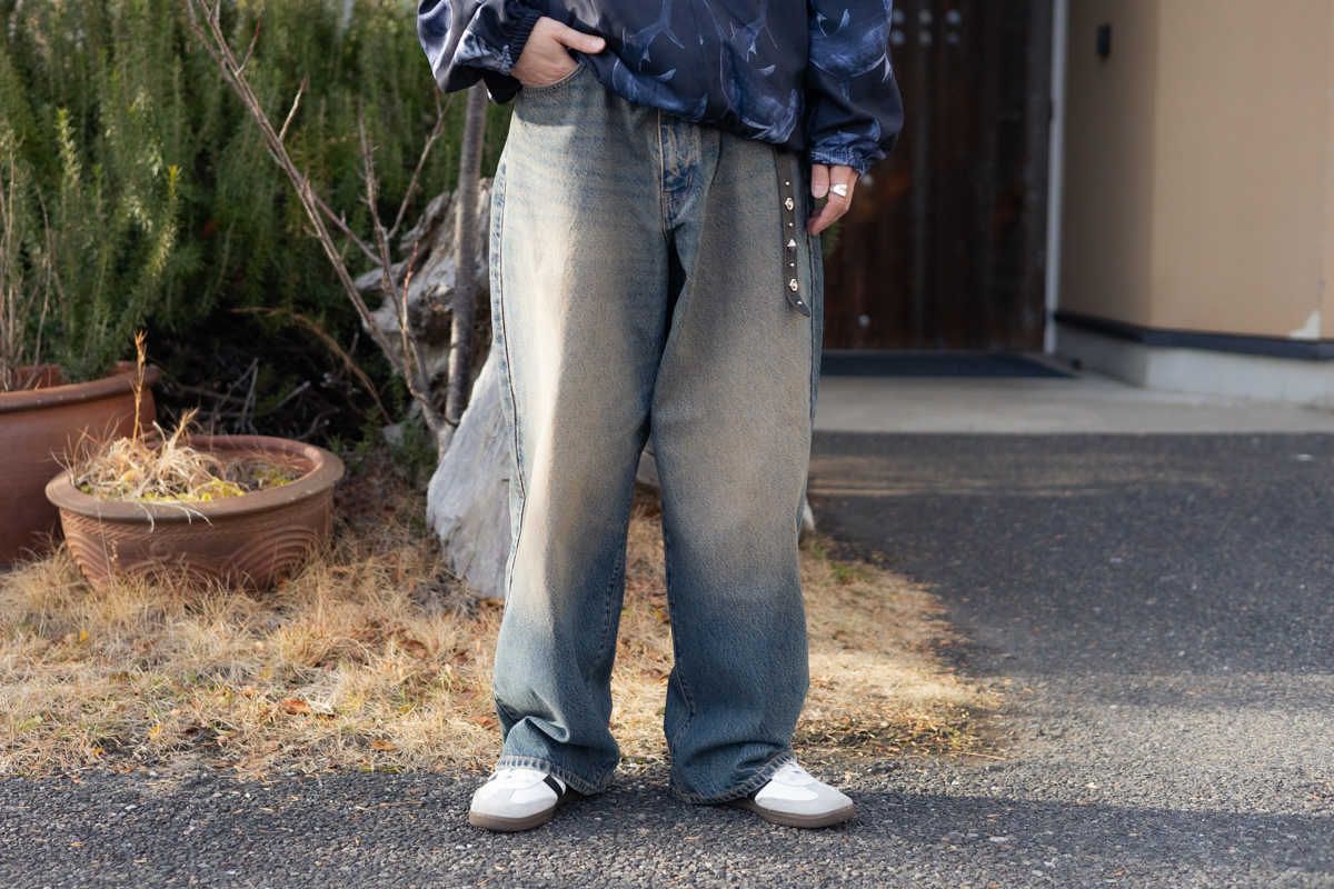 ゆったりデニムに合わせて様になります。