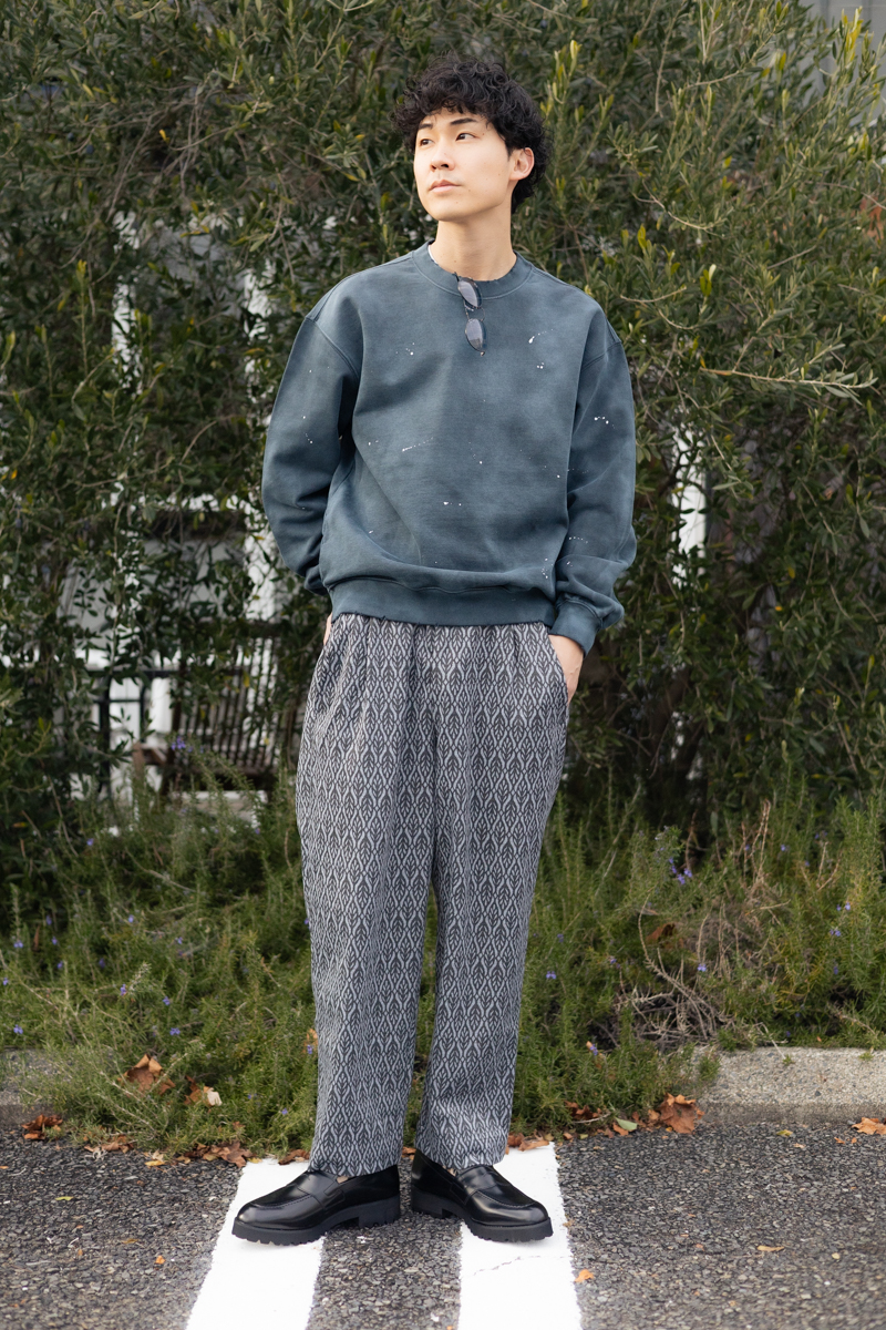 合わせているFORESTワンタックパンツも雰囲気抜群でオススメです!