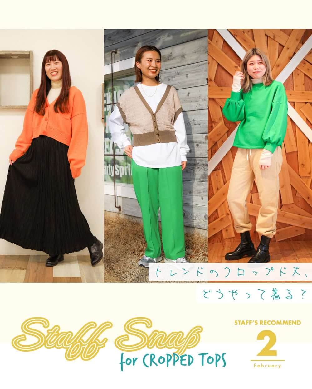 こんにちは♩春物が少しずつ入荷してきたのですが、この春よく見るのは“クロップド丈(ショート丈)”です。