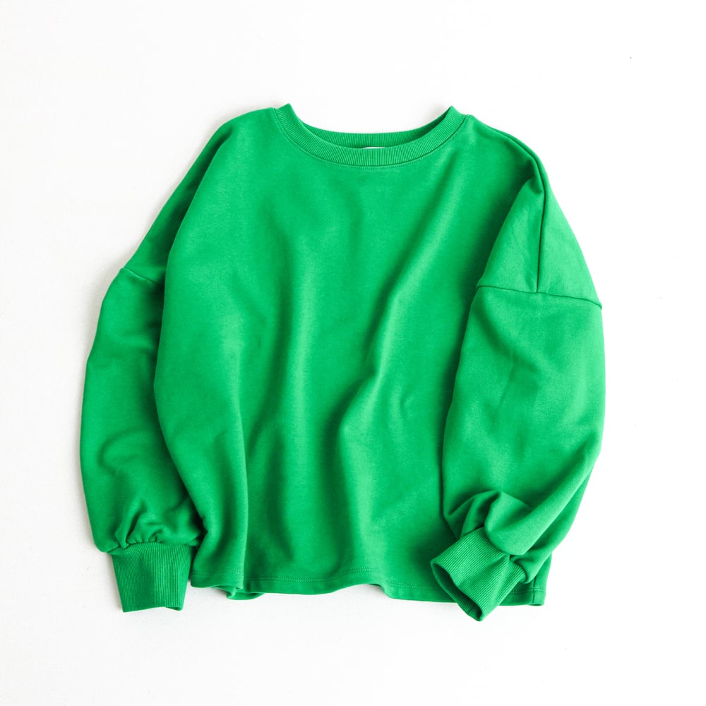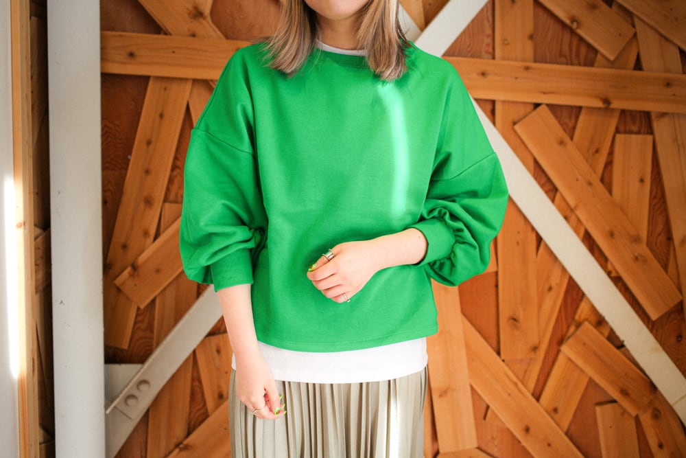 たっぷりとした袖と、コーデの主役にぴったりなパキッとしたカラーリングが春らしい1枚。クロップド丈をあまり着ない方も取り入れやすい着丈なので、気軽にトレンドコーデを楽しんでいただけます。