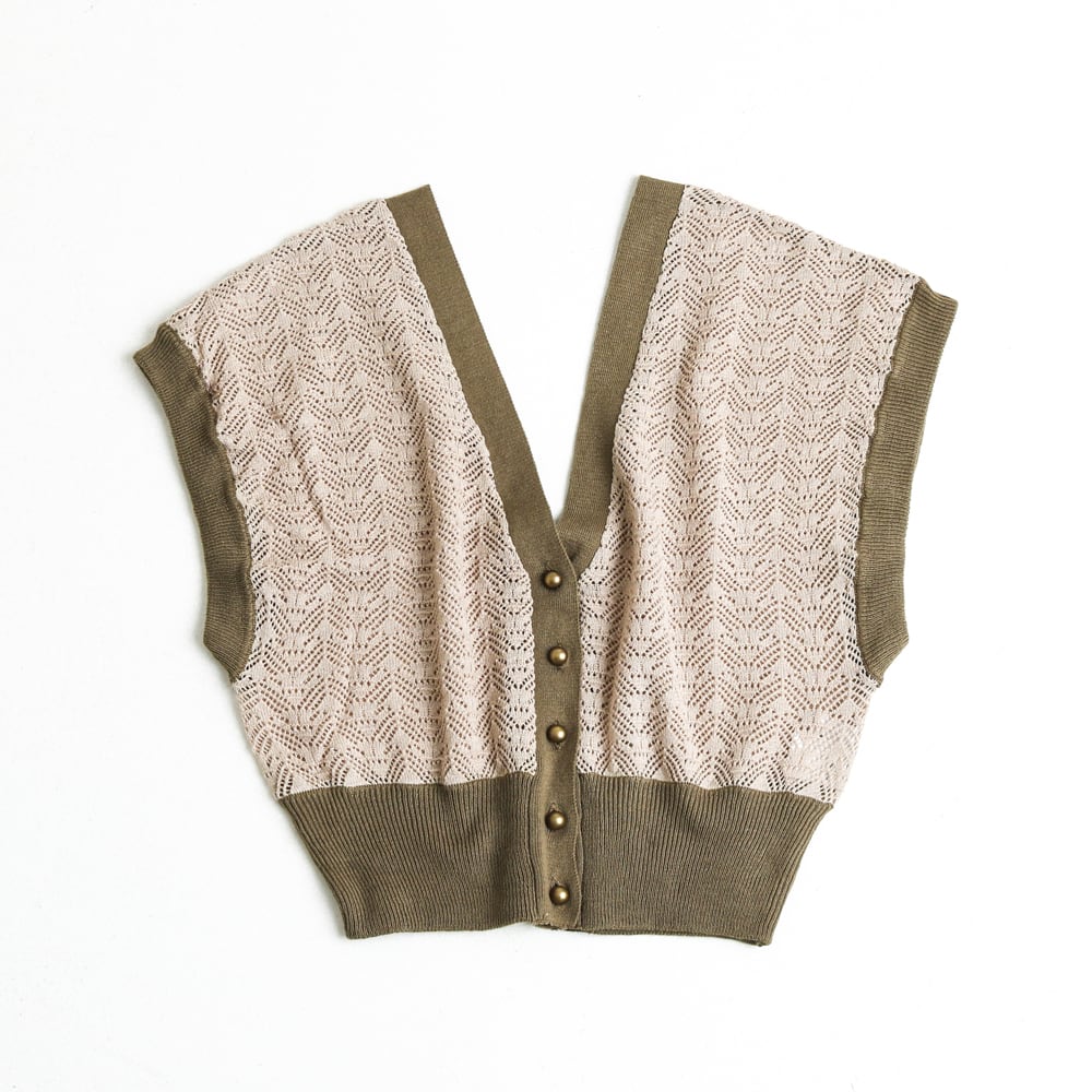 レース編みと大胆に開いたVネックで、フェミニンなルックスに仕上がったビスチェ。