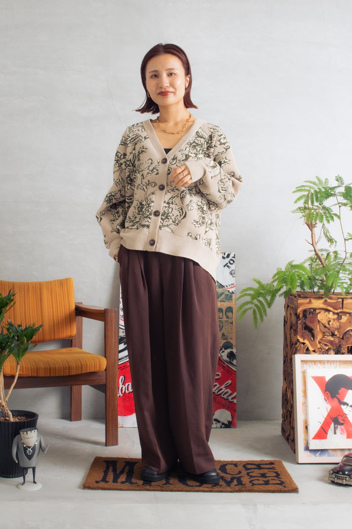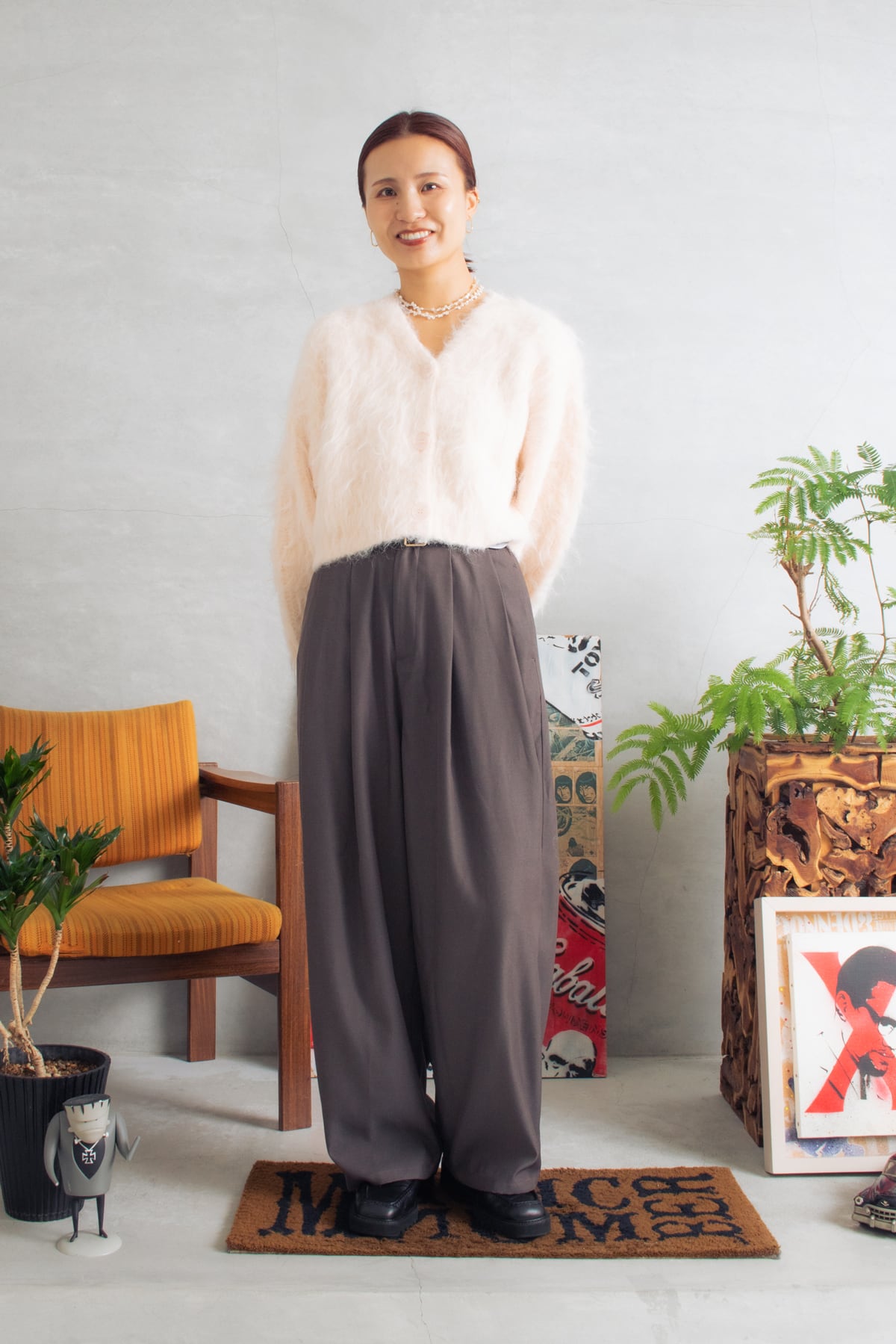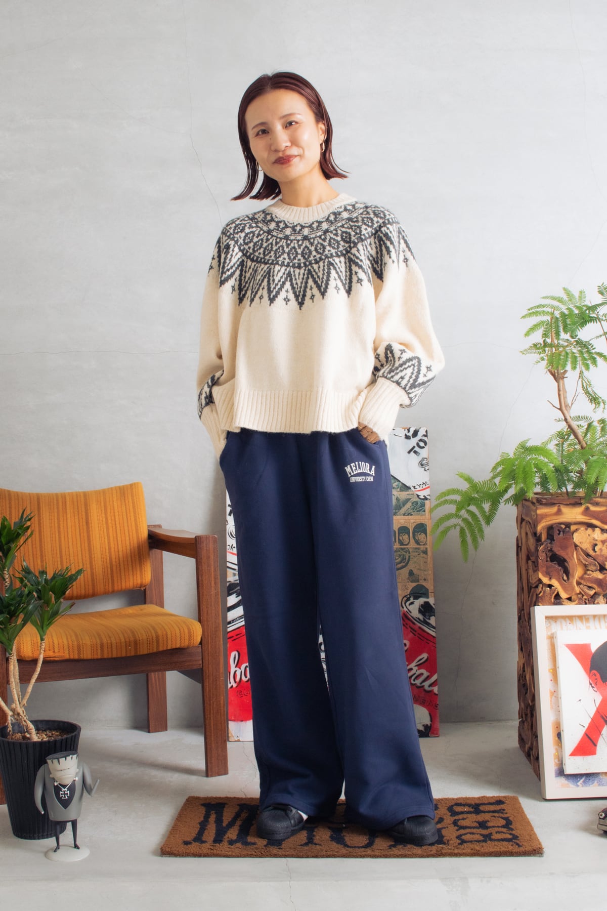 今年のBORN FREE Originlasのモンスターパーカーもすごく可愛いです。しかもね、とっても軽いんですよ。近年、暖冬が続きますのでダウンまではいらないかな?という方におすすめ。パンツもゆったりめで、全体的にルーズな感じに仕上げてみました。