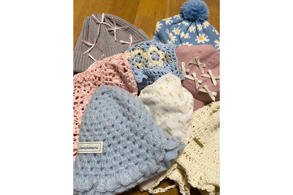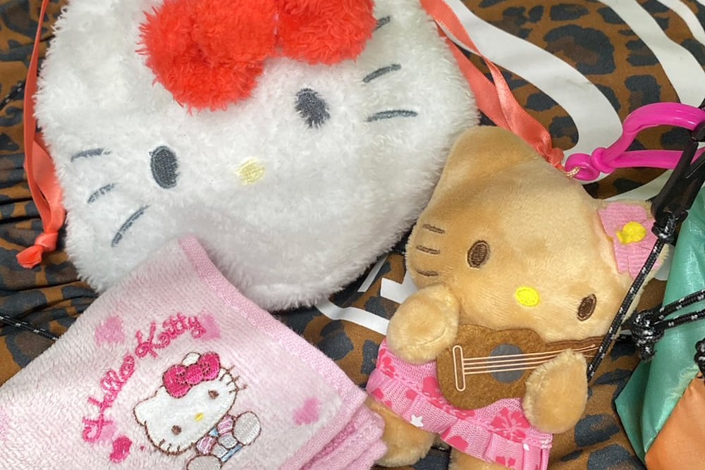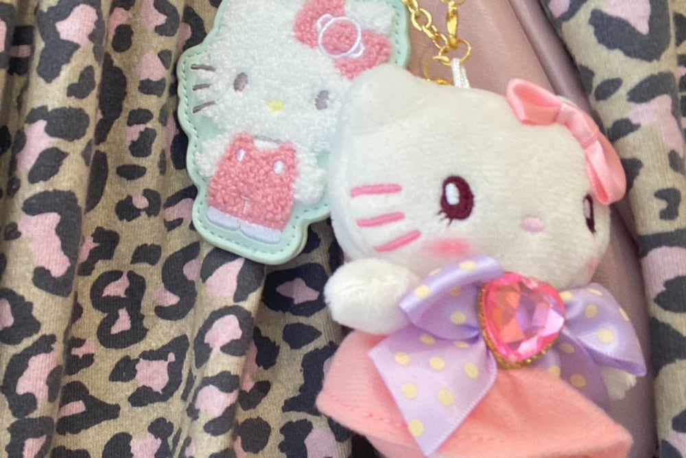 あとは可愛い被り物、帽子とかを最近集めてます。大量ではないんですけど、ちょっとした被り物系を集めたりしています。今日被ってるハットも、割と最近買いました。こういう感じのものを日々探しています。あとキティちゃんも好きです!カバンにつけたり、色々集めてます。