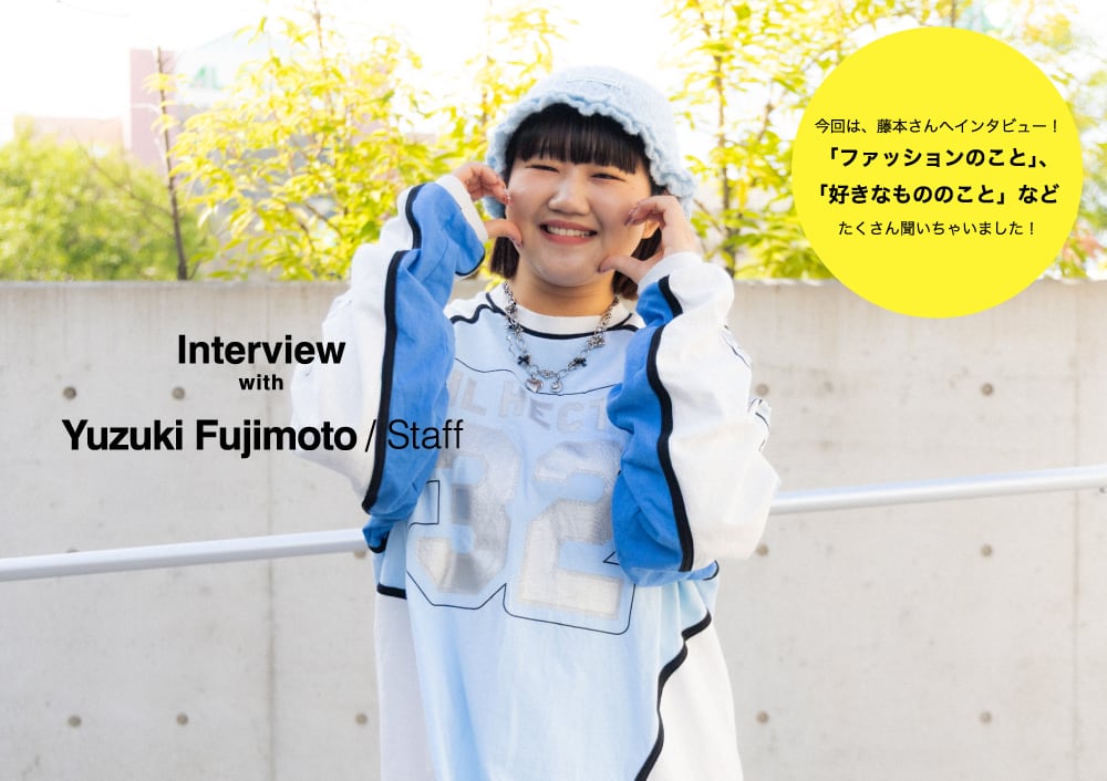 今月のSTAFF VOICEは、エイスクエア店の藤本さんへインタビューしてきました!可愛くて個性的なファッションが好きな藤本さんに、コーディネートのこだわりを聞いちゃいましたよ。また、藤本さんの趣味や好きなこともたくさん教えてもらいました!ぜひご覧ください♪